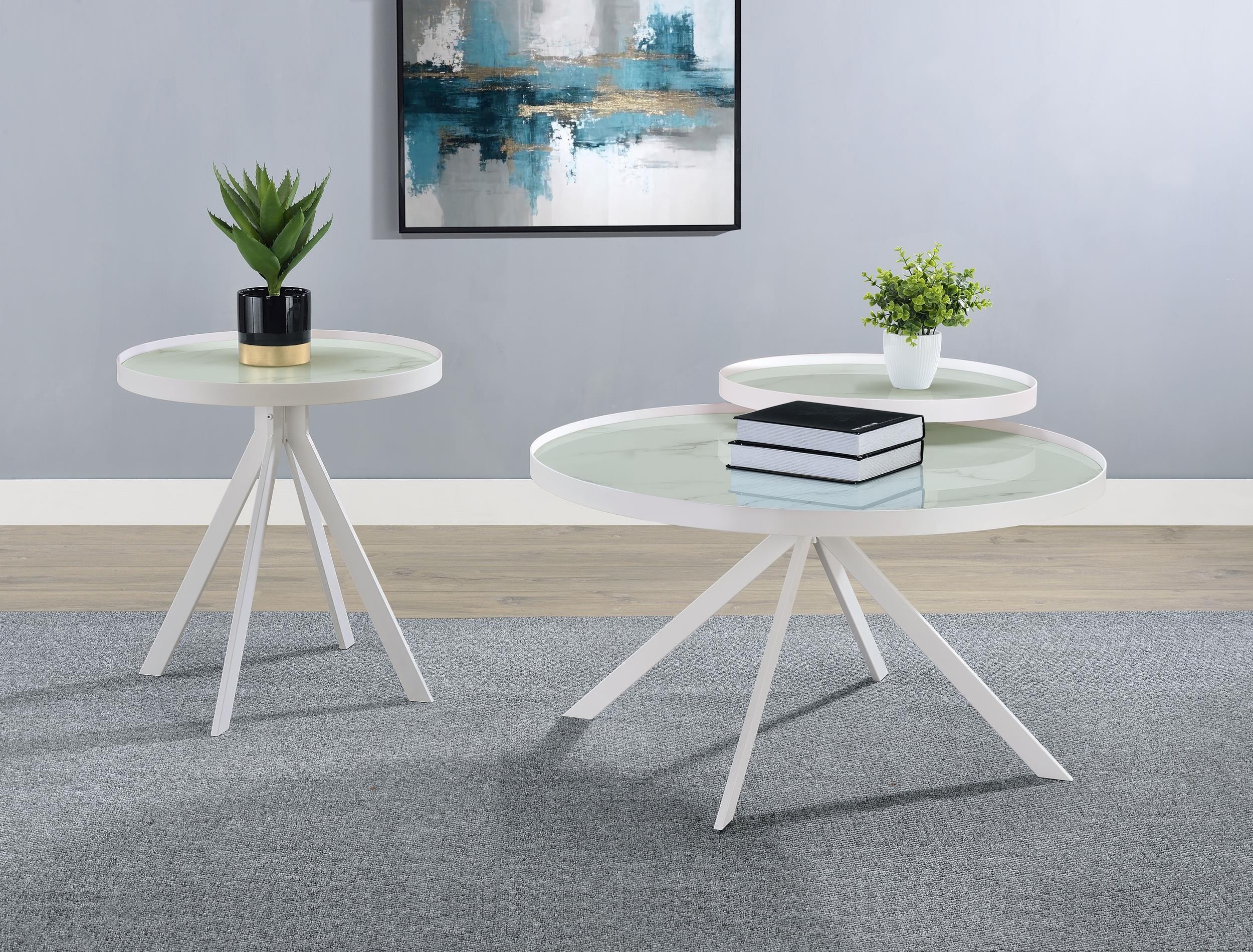 Briggs Round Marble Printed Glass Top Coffee Table White
