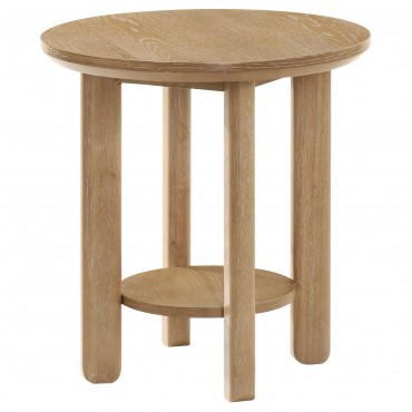 Ottowa Round Wood Side End Table with Shelf Light Oak