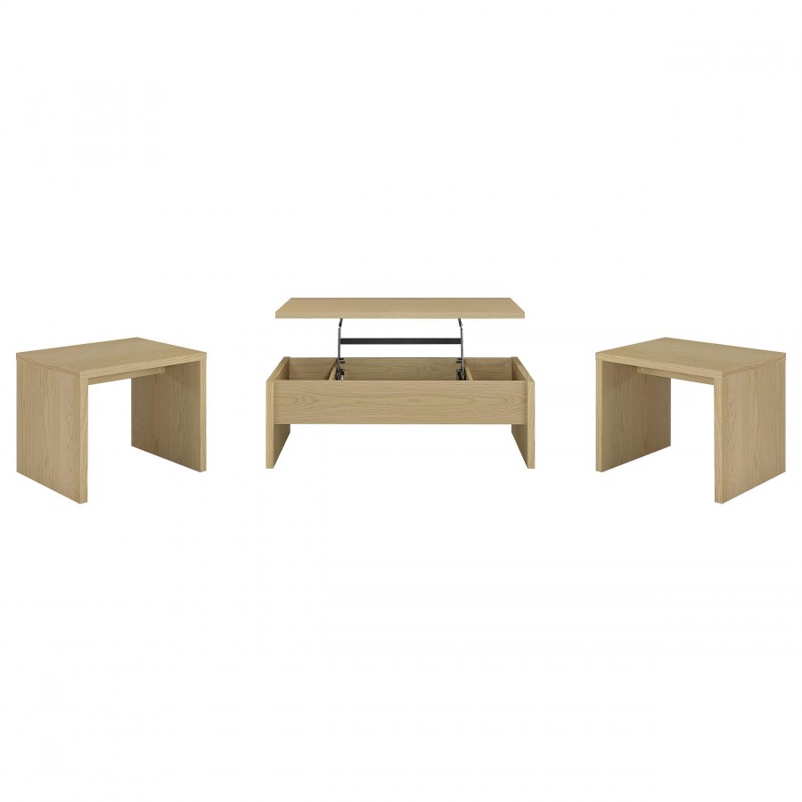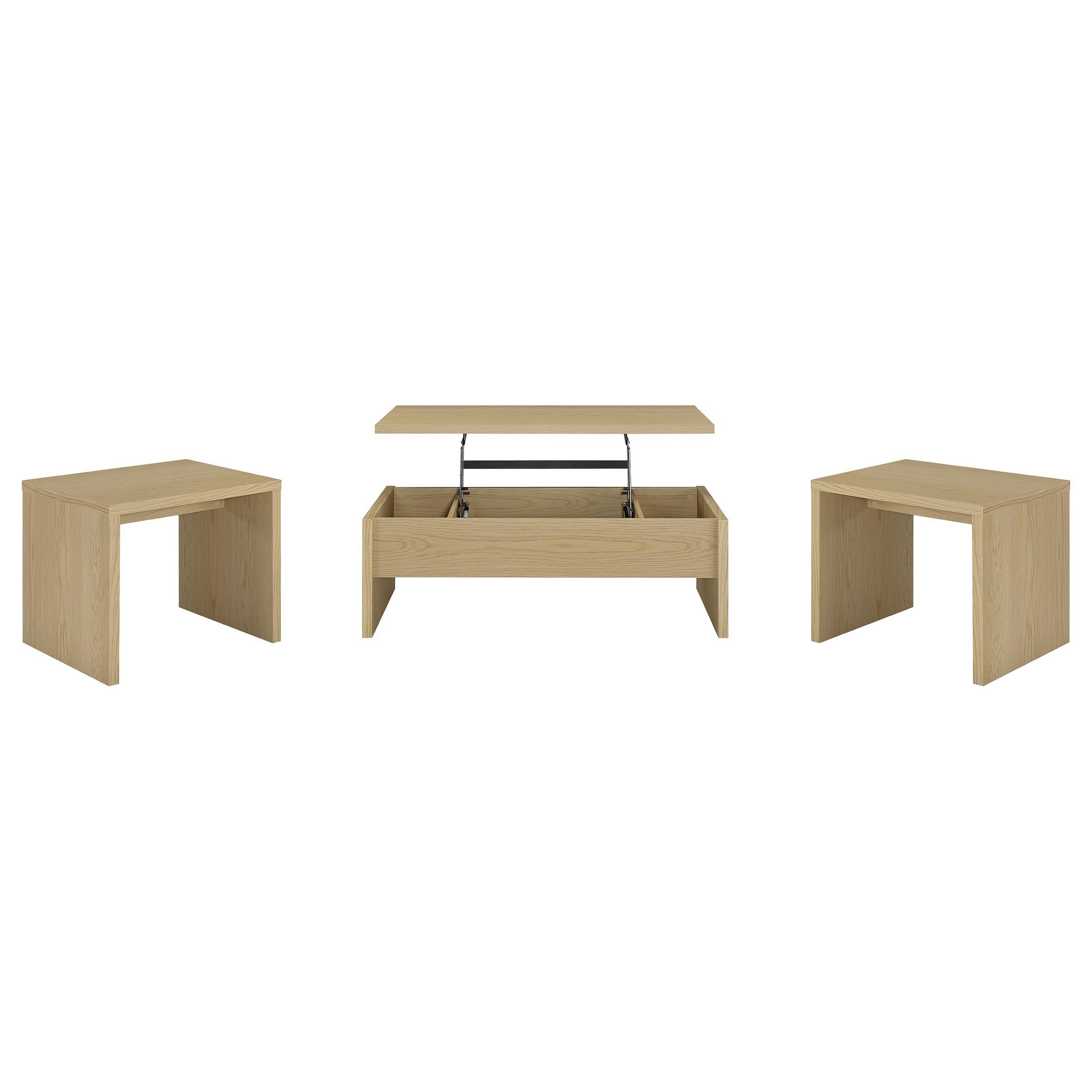Canoga 3-piece Lift Top Cocktail Coffee Table Set Light Oak
