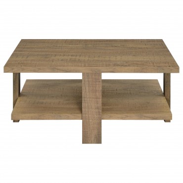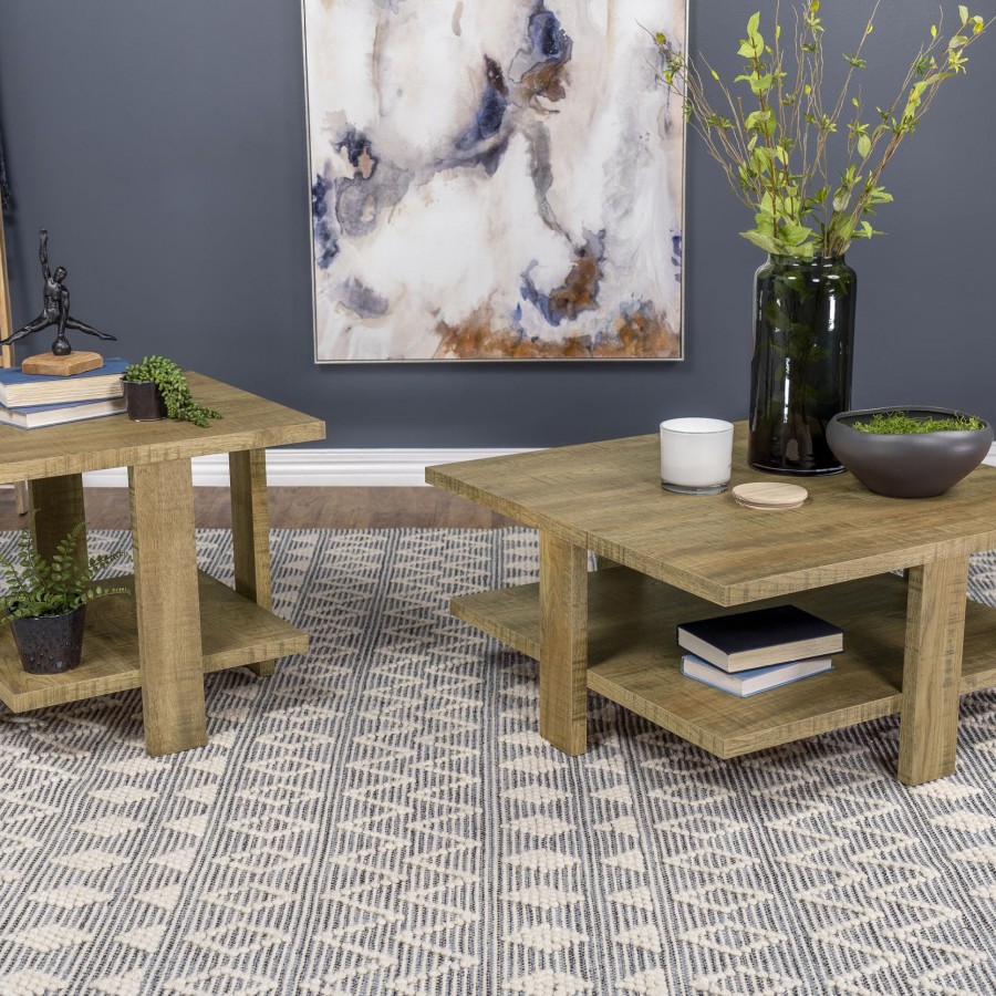 This coffee table set features a perfect blend of clean lines and natural beauty. Each table in the set is crafted from engineered wood with a mango finish and a rough sawn texture, offering two practical surfaces. The wide, board-like legs enhance the linear design, adding a rustic touch. Designed with versatility in mind, this set offers ample space for display, serving, or storage while bringing earthy charm and modern functionality to any living room.