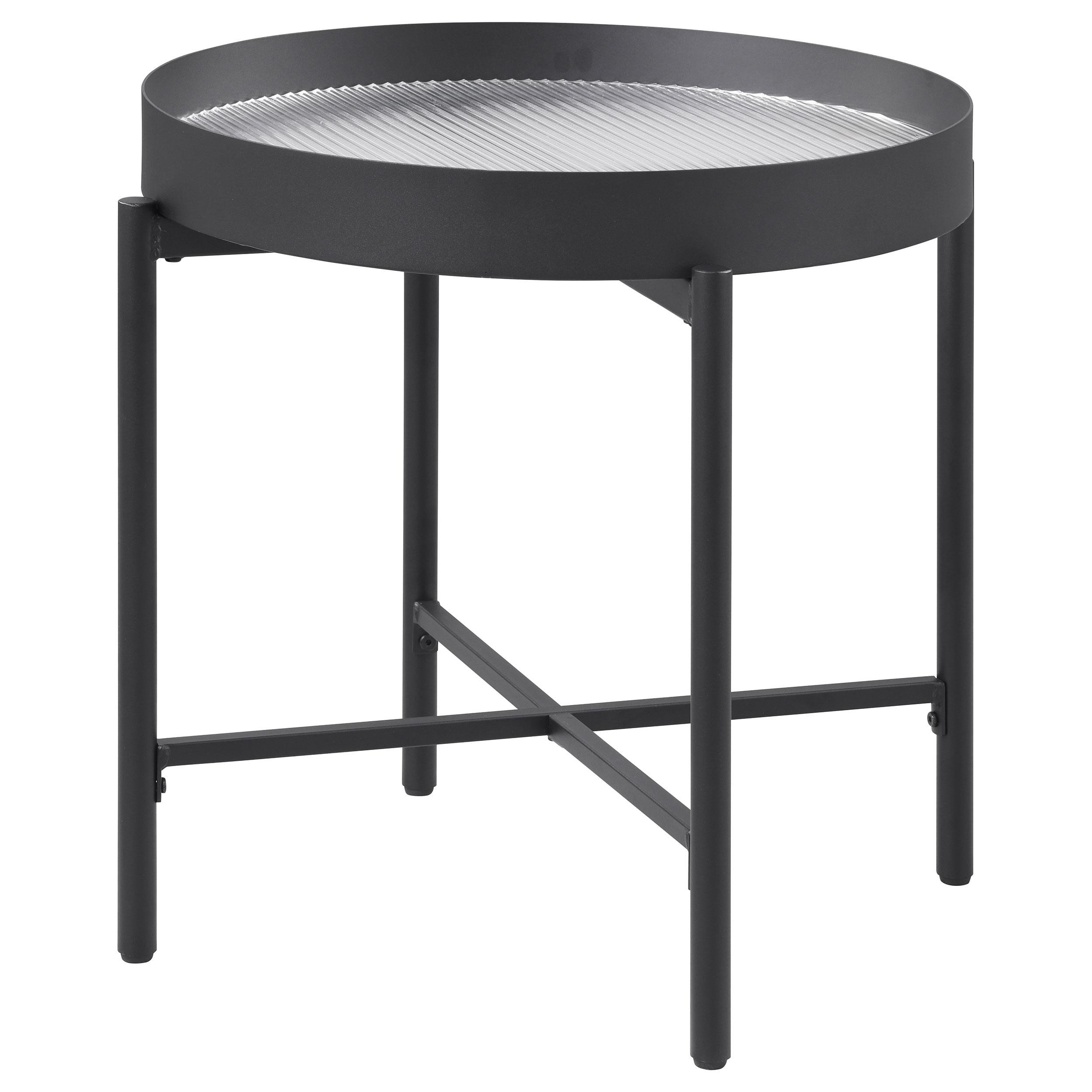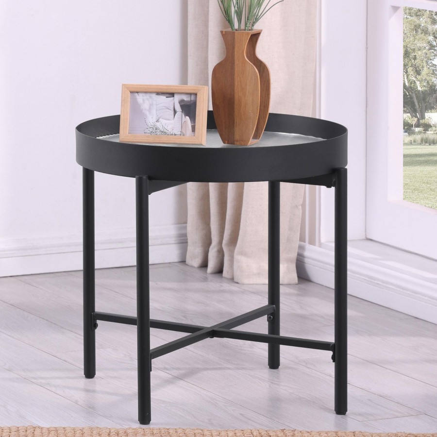 This elegant accent table invites modern style into your living room. With a sleek metal frame in a sandy black powder coated finish and a tempered reeded glass top, it effortlessly transforms into an occasional table or utility table. Whether placed beside a sofa as a side table or used to display décor as an end table, its versatile silhouette blends artistry, practicality, and timeless design into any contemporary space.