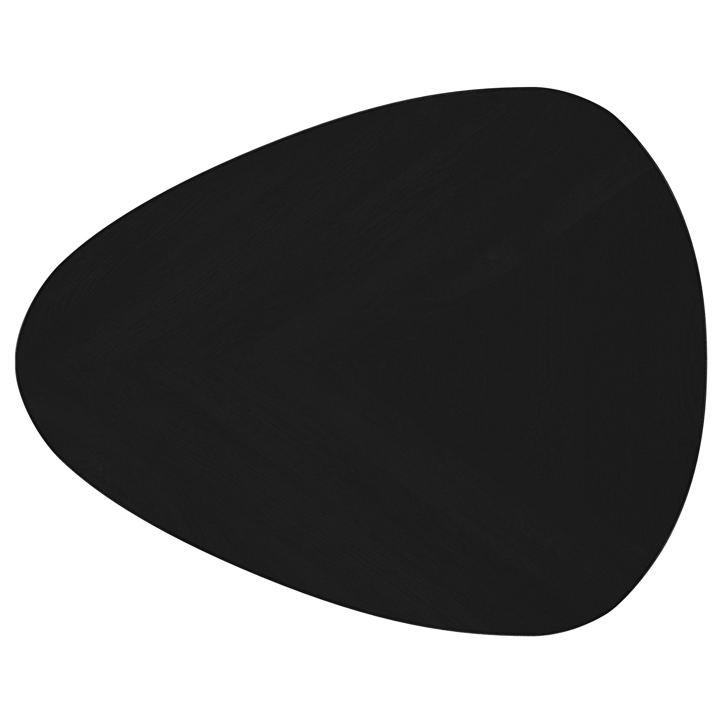 Elevate your living room with this sleek coffee table set, blending modern style with timeless craftsmanship. Handcrafted from solid mango wood, each table boasts a smooth black finish that emphasizes its triangular tabletop design with softly rounded corners. The splayed iron legs feature a black powder-coated finish, offering sturdy support with an airy aesthetic. Perfect for creating a cohesive and contemporary centerpiece, this occasional set combines durability and elegance effortlessly.