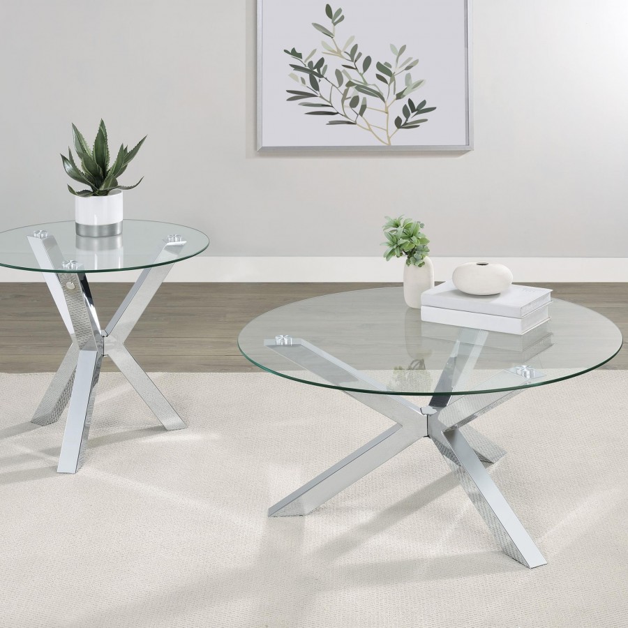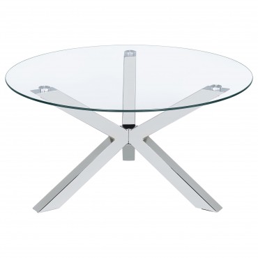Kenzie Round Tempered Glass Top Cocktail Coffee Table Chrome