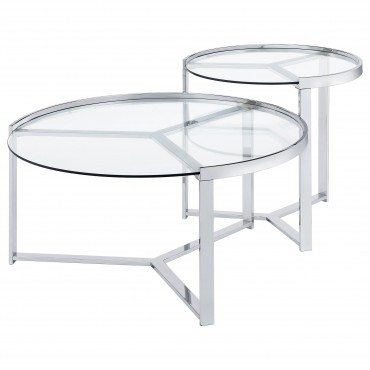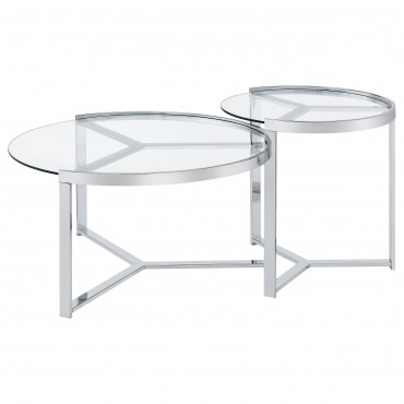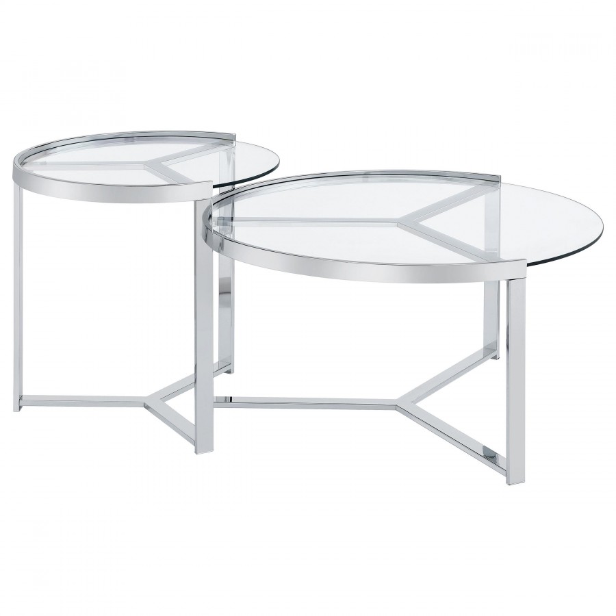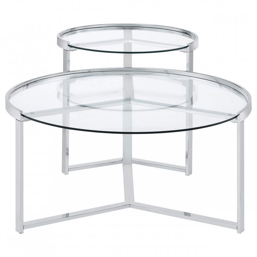 Delia 2-Piece Round Glass Top Nesting Coffee Table Chrome