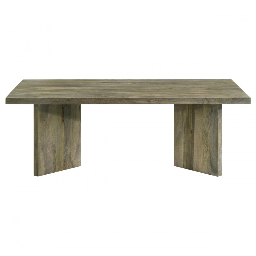 This coffee table set, crafted from solid mango wood, brings the rustic charm of the natural world into your living space. Featuring large, sturdy planks and a minimalist design, the cocktail table and side table showcases the wood's rich grain and organic textures. With robust construction and timeless appeal, the occasional set offers spacious surfaces for decor and utility. A perfect blend of rustic beauty and functionality, it complements both modern and traditional interiors.