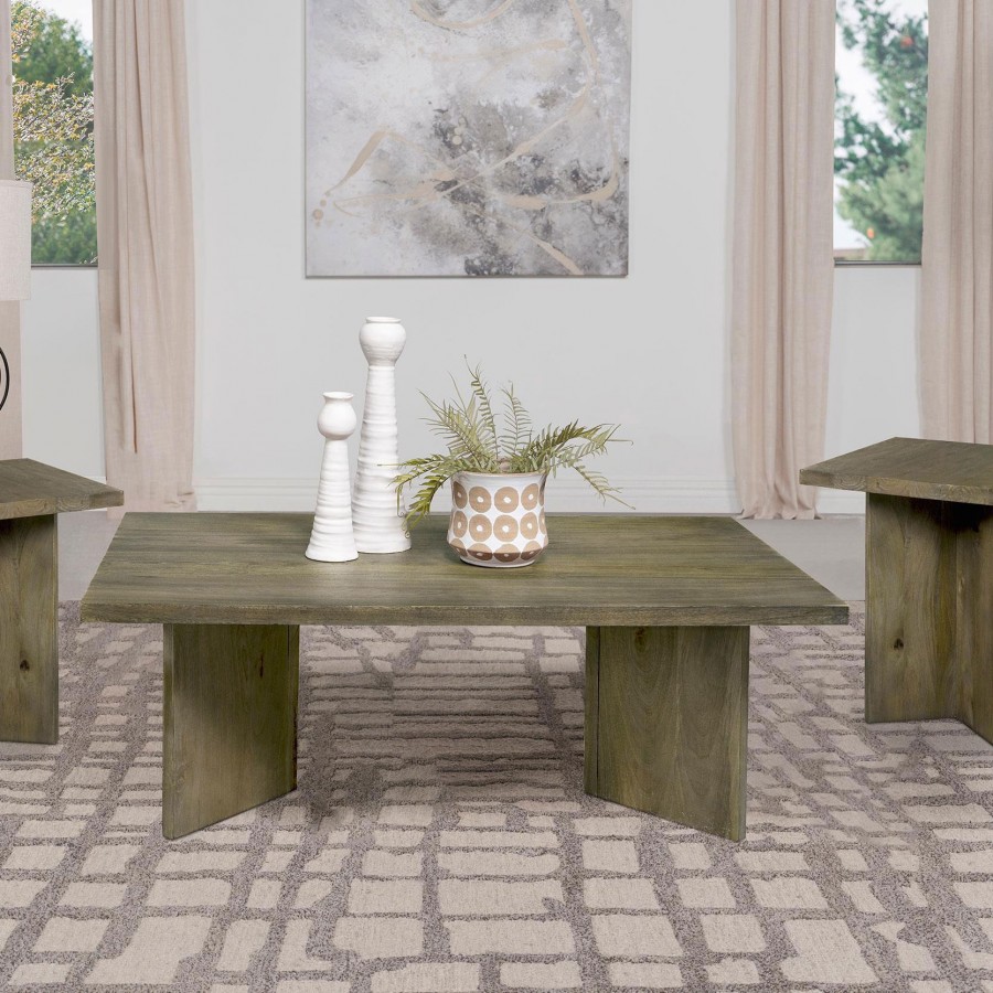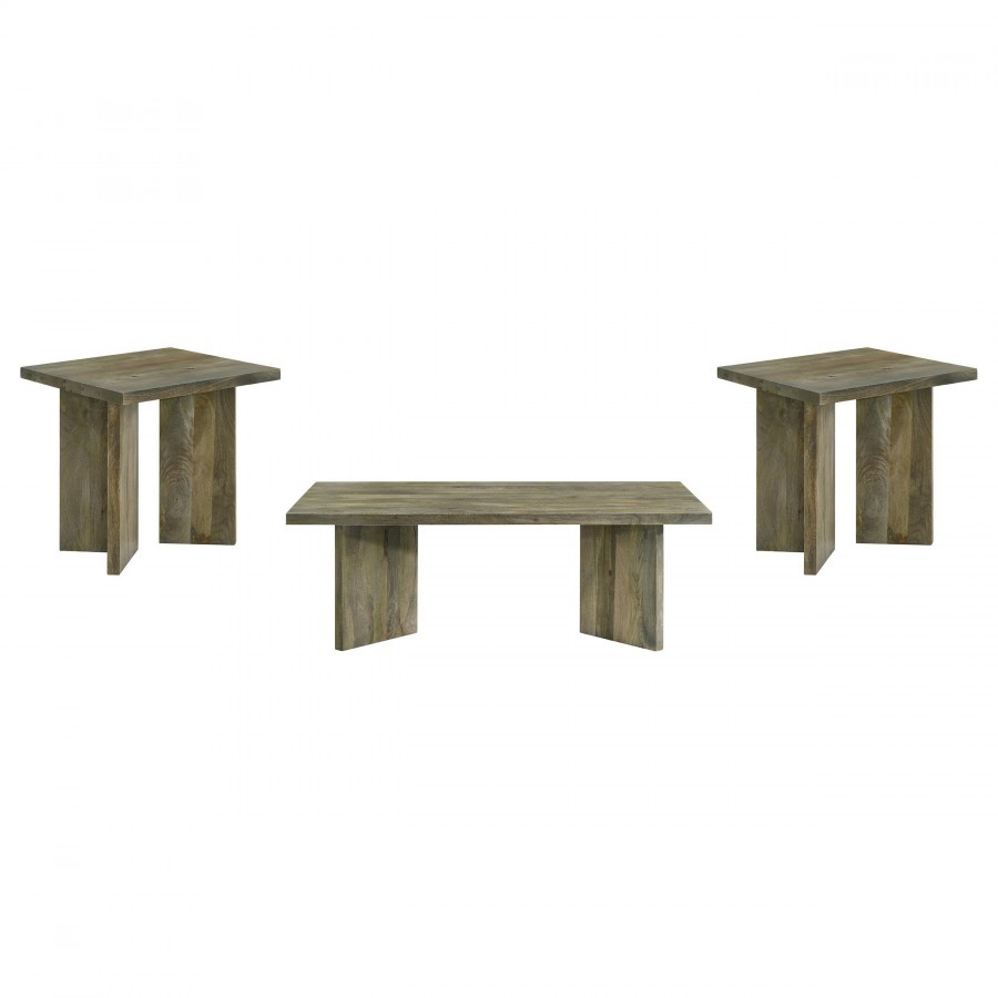 This coffee table set, crafted from solid mango wood, brings the rustic charm of the natural world into your living space. Featuring large, sturdy planks and a minimalist design, the cocktail table and side table showcases the wood's rich grain and organic textures. With robust construction and timeless appeal, the occasional set offers spacious surfaces for decor and utility. A perfect blend of rustic beauty and functionality, it complements both modern and traditional interiors.