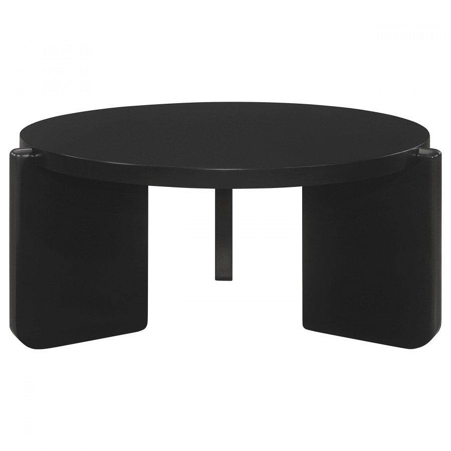 Elevate your living room with this sleek coffee table set, featuring a bold modern design and cohesive black finish. Constructed from durable solid rubberwood, these pieces provide lasting stability and strength. The round tabletops offer generous surface areas for decor, drinks, or books, while the unique leg designs add an architectural element. Perfect for modern or minimalist interiors, this set blends functionality with contemporary aesthetics.