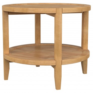 Encourage a warm, welcoming ambiance with the choice of a modern farmhouse end table. Its round profile is crisp and familiar, while offering movement and flowing energy. The table is crafted in rubberwood for optimal quality and received a warm maple finish that's stylish without overwhelming surrounding decor. A slight tray effect adds depth the tabletop and lower shelf, creating another touch of texture and dimension. The table is designed with a full lower shelf, offering a perfect spot for a personalized display of books or other decor.