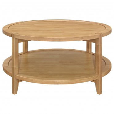 Elevate your living room with the natural warmth and cohesive charm of this coffee table set. Designed with a modern farmhouse aesthetic, the round tables feature sleek maple finishes that create a timeless and welcoming ambiance. Each table is crafted from solid rubberwood for strength and durability. The recessed tops and shelf edges introduce a tray-like effect, adding dimensionality and texture. Full lower shelves provide versatile storage or display options, enhancing both function and style.