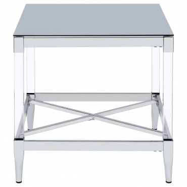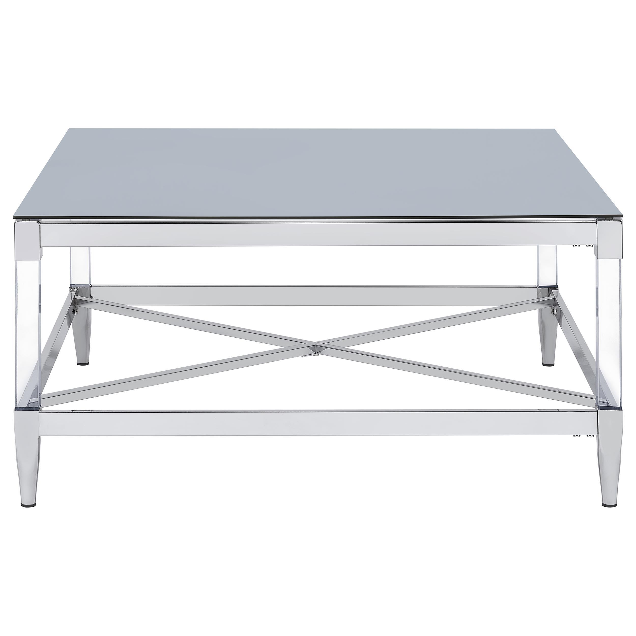 Transform your living room with this coffee table set, a stunning combination of mirrored tempered glass tops and chrome-electroplated frames. The coffee table and end table feature square tops that reflect light and color, creating vibrant focal points. Clear acrylic leg posts add an airy, floating aesthetic, while tapered feet provide stability and elegance. Designed for modern interiors, this set combines contemporary artistry with practical functionality.