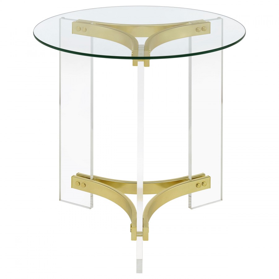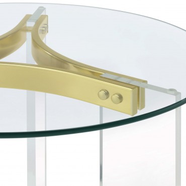 Janessa Round Glass Top Acrylic Leg End Table Matte Brass