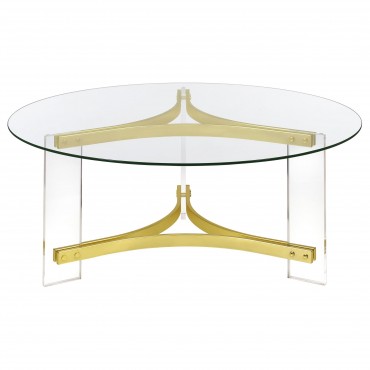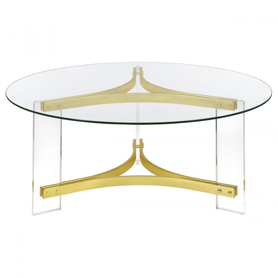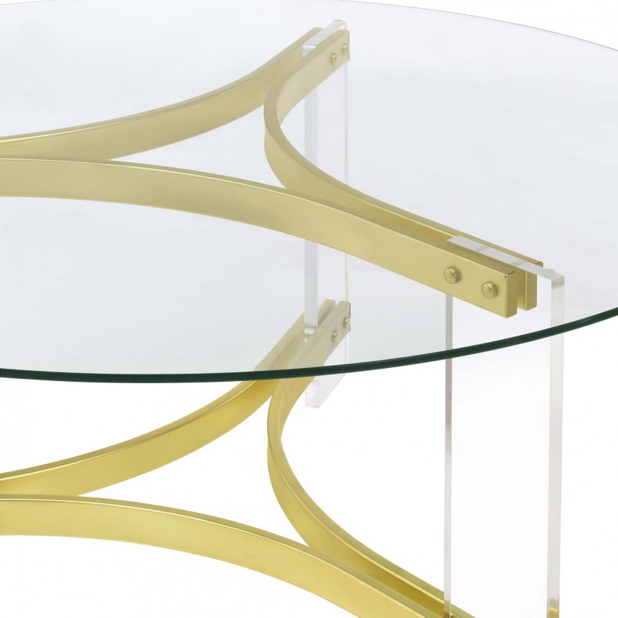 Janessa Round Glass Top Acrylic Leg Coffee Table Matte Brass