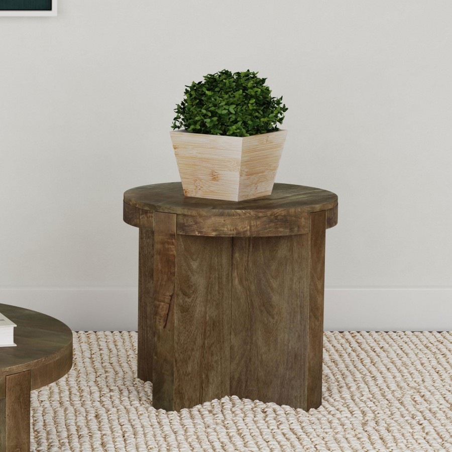 Kinkaid Round Solid Mango Wood End Table Brown
