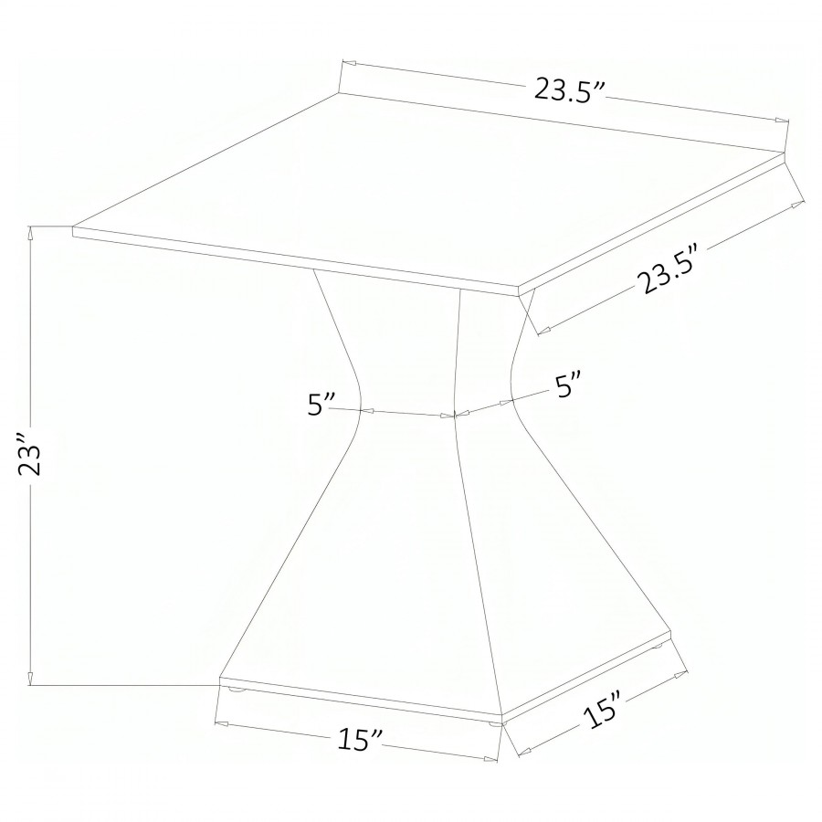 Introduce stylish allure with this modern end table, showcasing an hourglass-inspired base in a polished silver finish. Constructed with stainless steel and tempered glass, it features a square top with a beveled edge, adding dimension and refinement. The clear glass highlights the sculptural design of the base, reflecting light and creating visual intrigue. Perfect for modern interiors, this table combines bold artistry and functionality to elevate any living space.