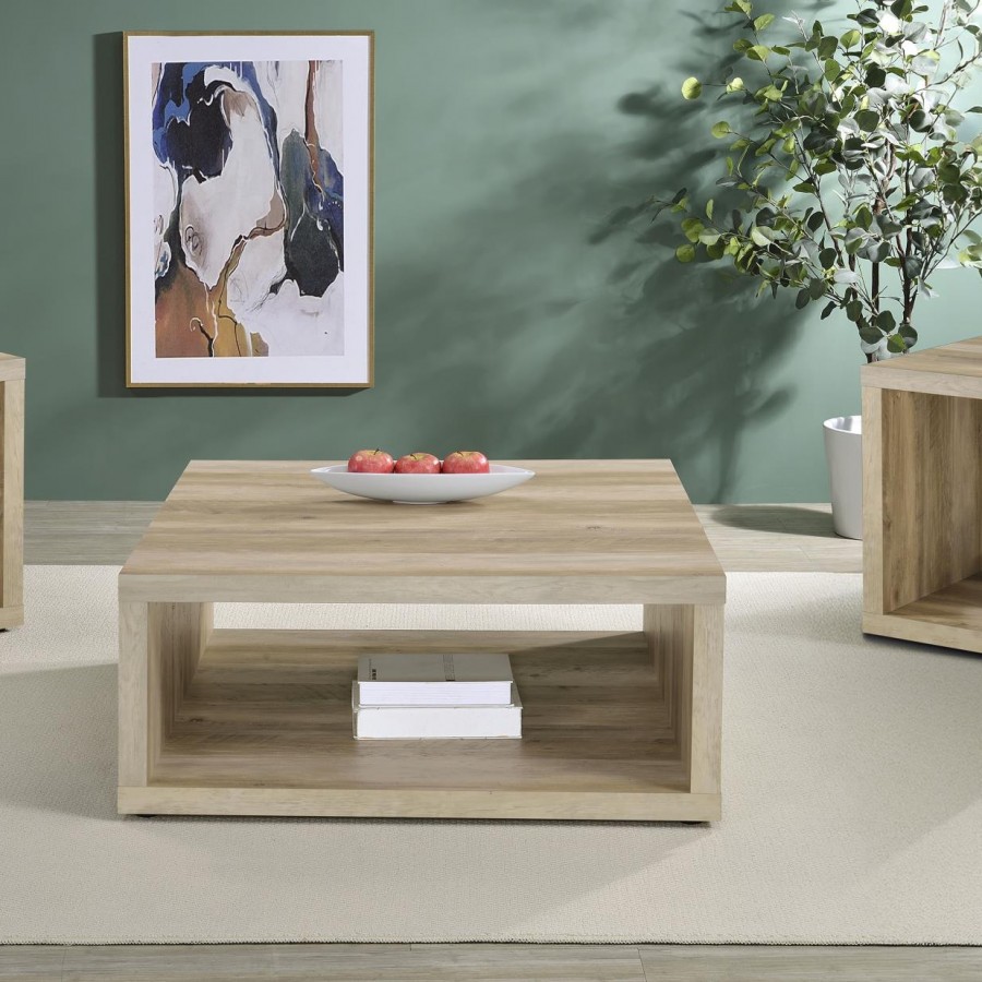 This coffee table set combines modern simplicity with rustic charm, crafted from durable engineered wood with a wood-look finish. The cube-inspired design features open sides and lower shelves, offering ample space for storage or display. Each piece boasts a warm, earthy aesthetic that complements farmhouse and contemporary decor. Perfect for organizing books, decor, or baskets, this set adds a cohesive and functional focal point to any living room.