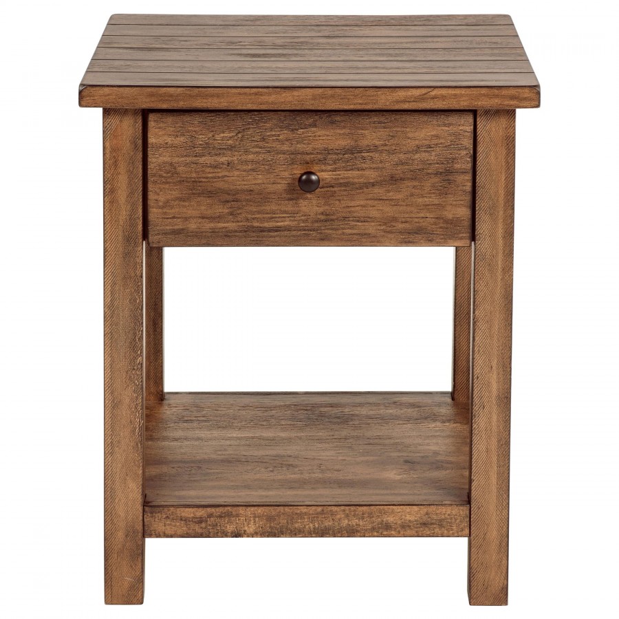 Payne 1-drawer Wood End Table with Shelf Distressed Brown