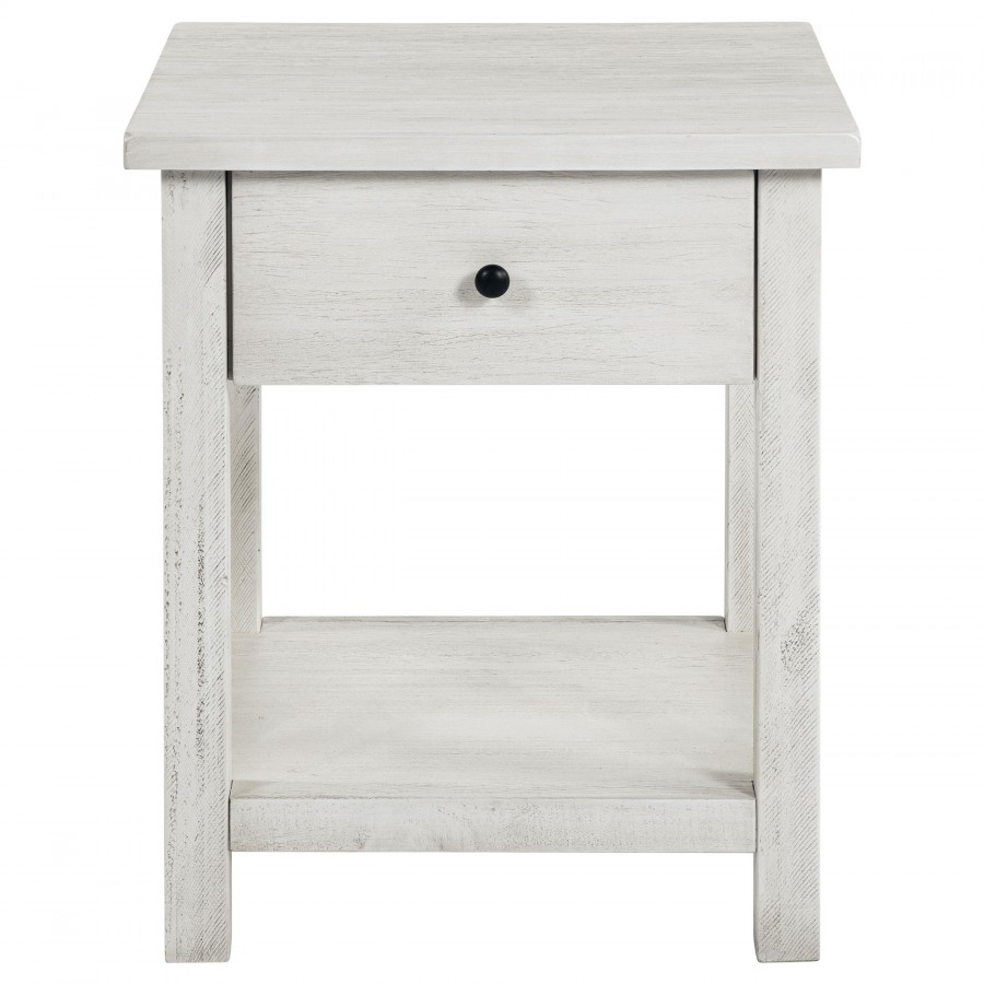 Payne 1-drawer Wood End Table with Shelf Distressed White