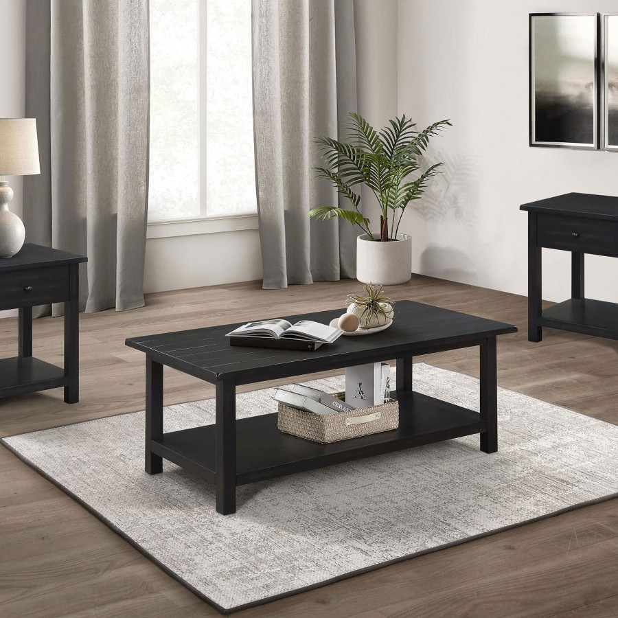 Elevate your living room with this coffee table set featuring a rectangular coffee table and an end table with a built-in drawer. Each piece is crafted from pine wood, engineered wood, and pine veneer for rustic flair and everyday practicality. The coffee table offers room for décor or snacks, while the end table provides discreet storage for essentials. This occasional table set effortlessly enhances farmhouse or casual interiors