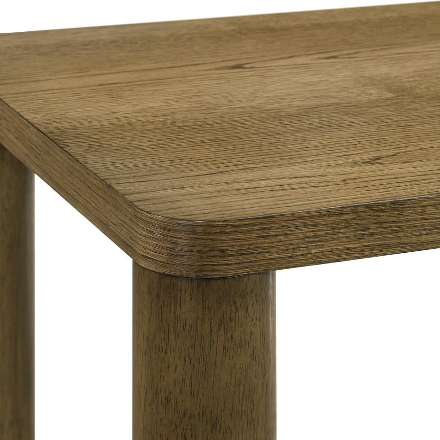 Balancing warmth with structure, this coffee table rests on cylindrical legs that anchor its linear profile. The softened corners and thick top deliver a subtle sculptural quality, while natural wood textures enhance its presence. Whether styled as a cocktail table or accent table, it invites relaxed connection and thoughtful display in the heart of the living room.