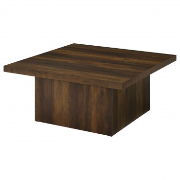 Defined by bold structure and rustic grain, this coffee table set grounds any space with architectural balance. Each table features a thick square top and matching plinth base, forming clean silhouettes with strong visual weight. The dark pine finish enhances organic grain detail across engineered wood and melamine veneer construction. Designed for modern rustic interiors, this set brings cohesion, presence, and long-lasting durability to the room.