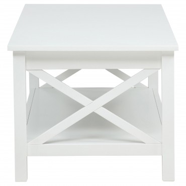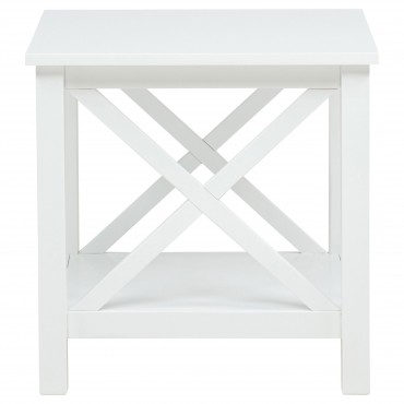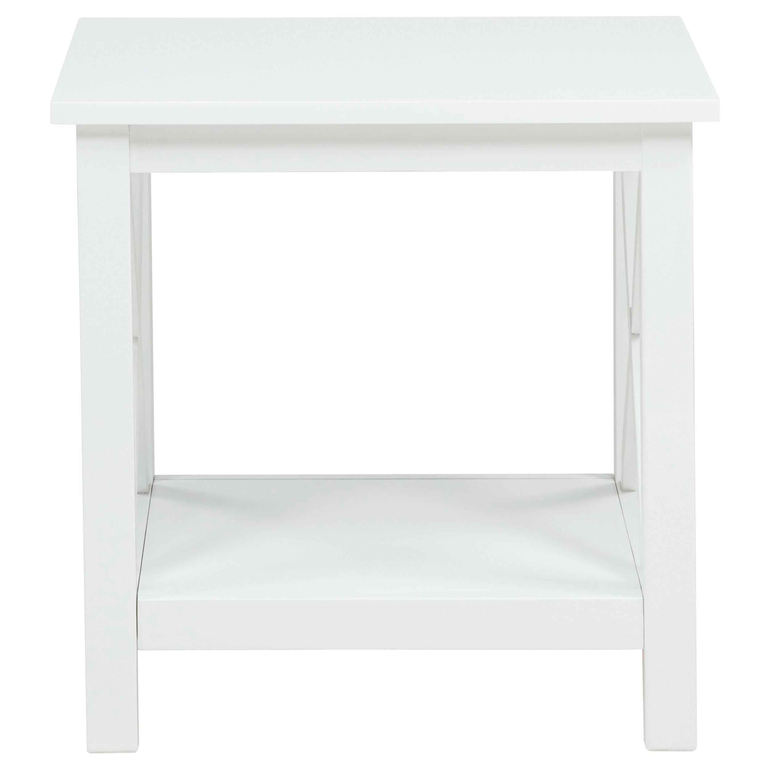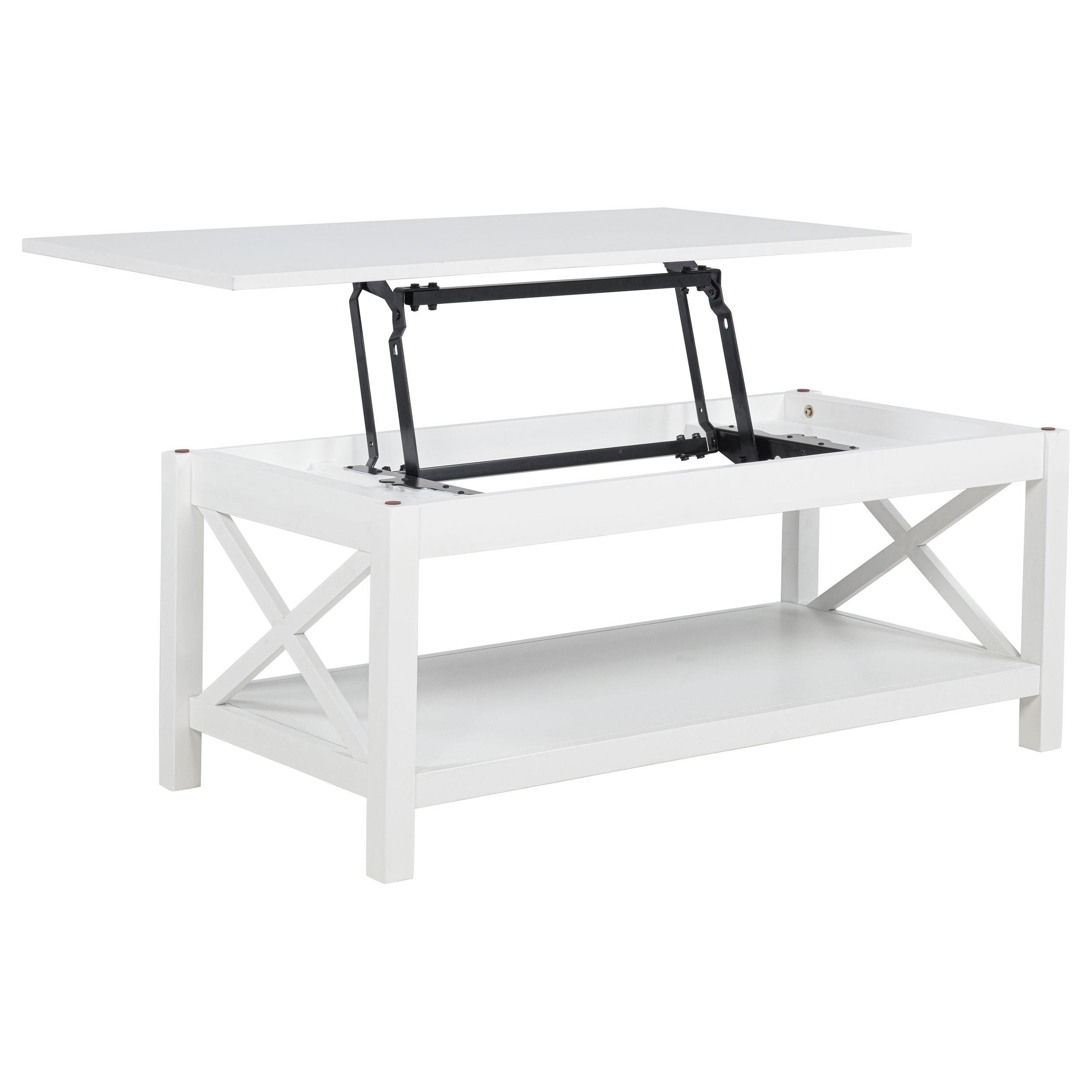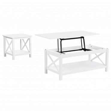Blending clean lines with classic charm, this occasional table set offers timeless appeal with practical purpose. The lift-top coffee table features hidden storage and a rising surface for flexible use, while the matching end table provides open shelving and farmhouse-inspired X-frame sides. Finished in bright white and crafted from pine and engineered wood, this living room set brings fresh energy and functional design to everyday moments.