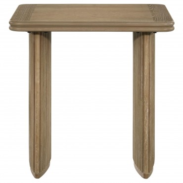 This sculptural coffee table set blends architectural rhythm with natural warmth through its curved pedestal bases and reeded detailing. The rectangular coffee table and square end table feature rounded corners and rich wood grain texture, finished in a distressed light brown tone that enhances their organic appeal. Crafted from engineered wood and ash veneer, this set brings lasting structure and visual harmony to both contemporary and transitional living spaces.