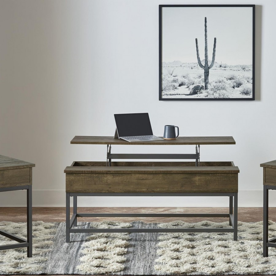 Byers 3-piece Lift Top Coffee and End Table Set Brown Oak
