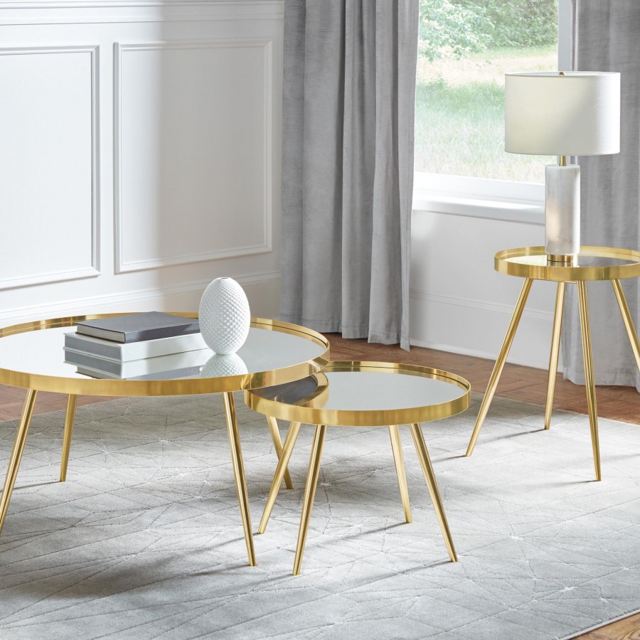 Kaelyn 3-piece Round Coffee and End Table Set Gold