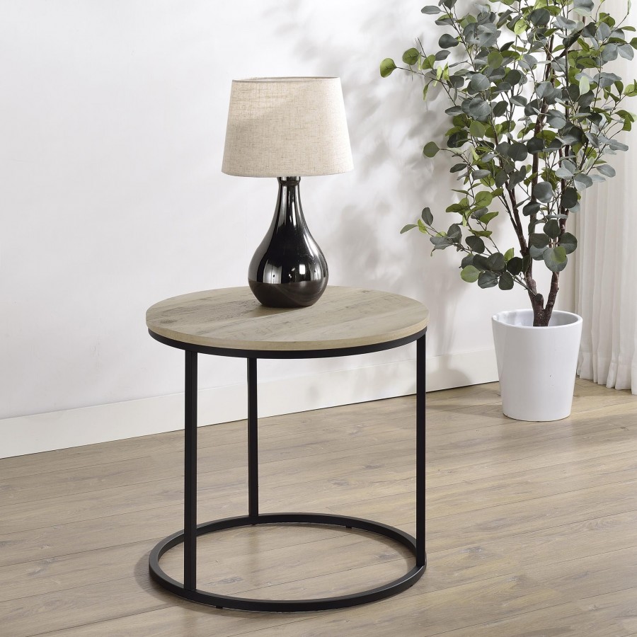 With soft edges and quiet contrast, this round end table brings warmth and ease to any room. Its circular top invites rest—a place for books, light, or pause—while the open metal base offers balance and breathability. A study in modern simplicity, it tucks beside a favorite chair or anchors a sofa with grace. Designed for the in-between moments, it adds rhythm and romance to the everyday.