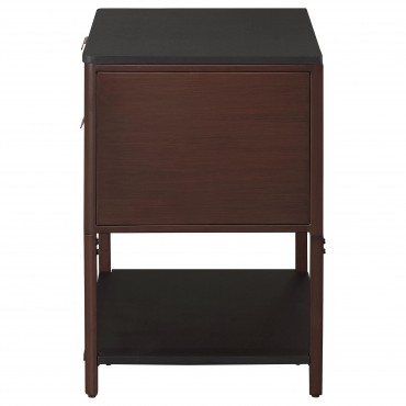 Enhance your living space with this versatile side table, which can also serve as a stylish bedside table. Its two spacious drawers feature elegant fluted detailing, adding texture and sophistication to your décor. The sturdy metal frame, finished in a rich hue, ensures durability, while the lower open shelf provides convenient storage or display space. Whether beside your bed or next to a sofa, this table effortlessly blends practicality and style. Its sleek design and functionality make it an essential piece for both modern and traditional settings.