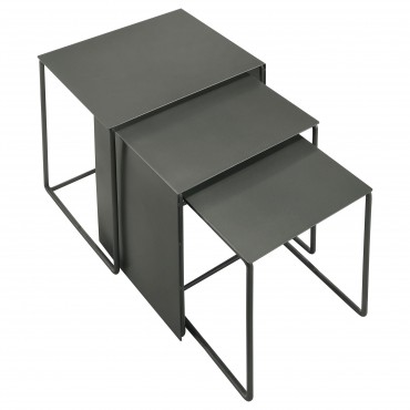 Imez 3-piece Rectangular Metal Nesting Table Set Grey