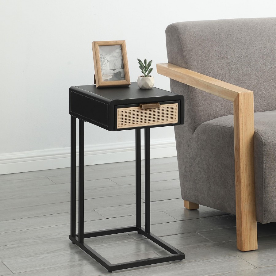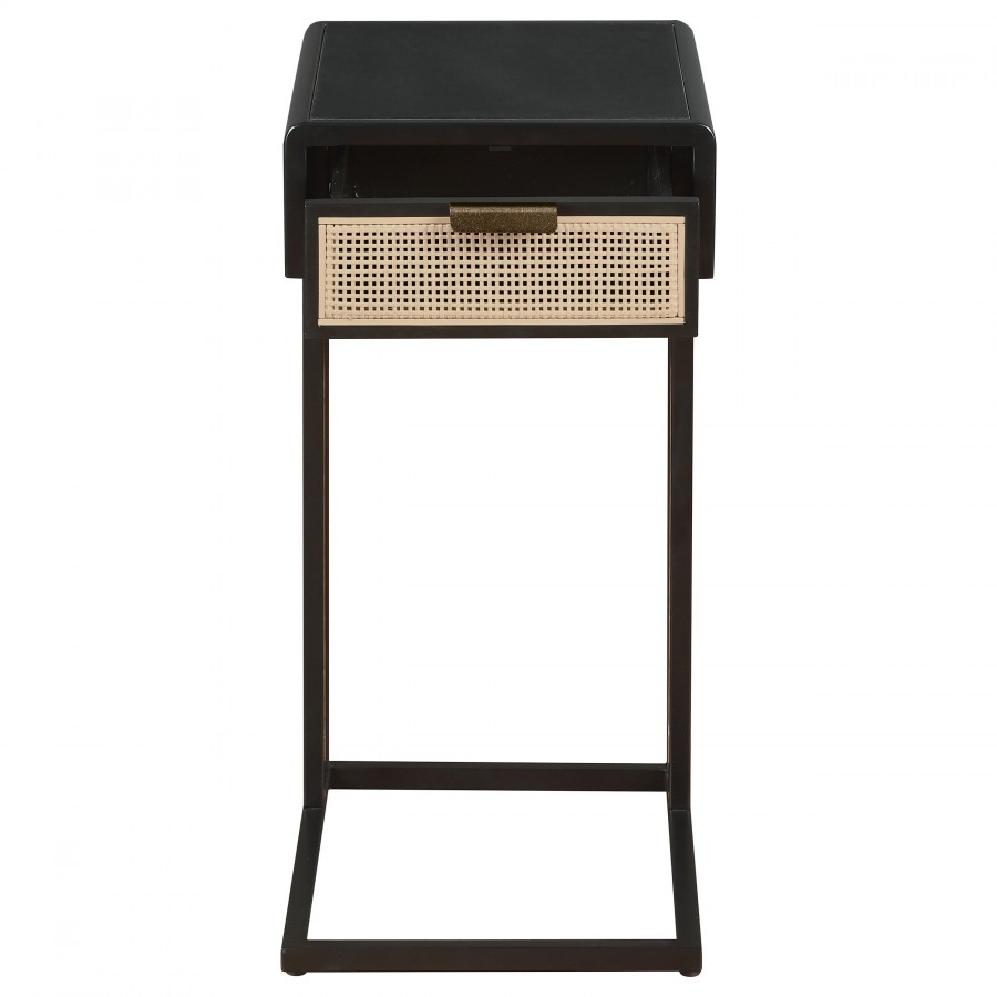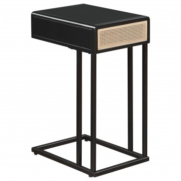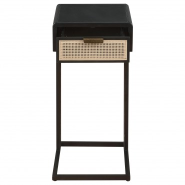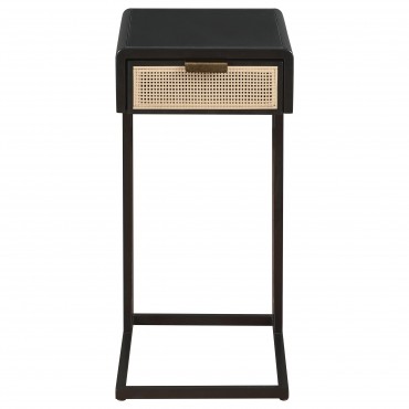 Amherst 1-drawer Radio Weave Cane Metal Side Table Black