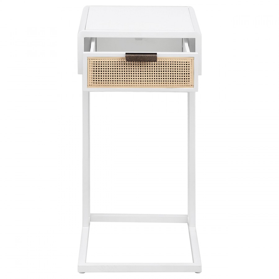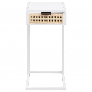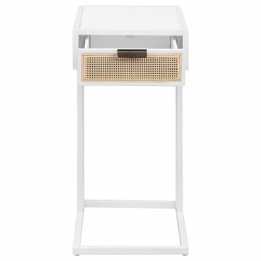 Amherst 1-drawer Radio Weave Cane Metal Side Table White