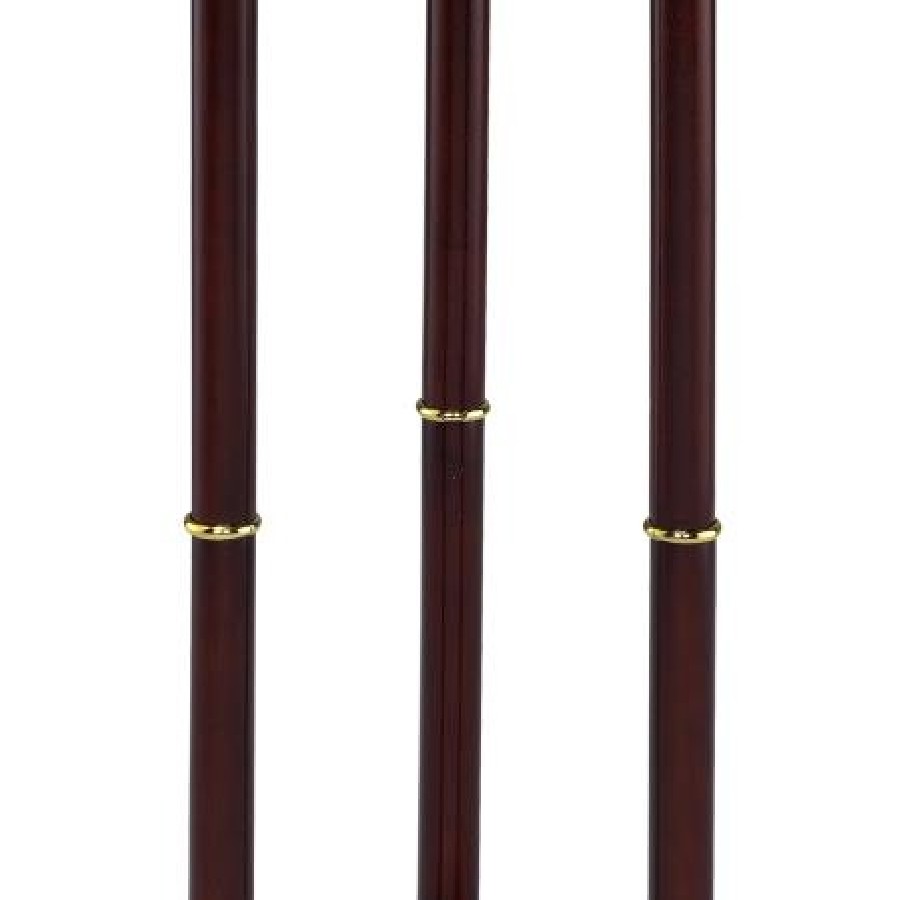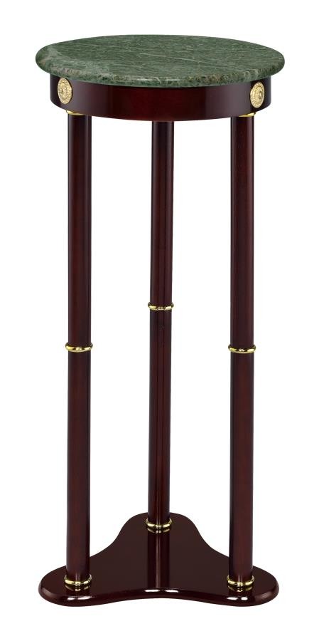 Add a refined touch to any room with this elegant accent table, ideal as a decorative stand or pedestal. A polished green marble top introduces organic texture and visual contrast, while the deep brown wood base provides classic warmth. Gold-tone accents elevate the traditional aesthetic, making it a charming fit for formal living spaces, hallways, or entryways. Built with solid and engineered wood, this compact piece blends timeless design with long-lasting quality.