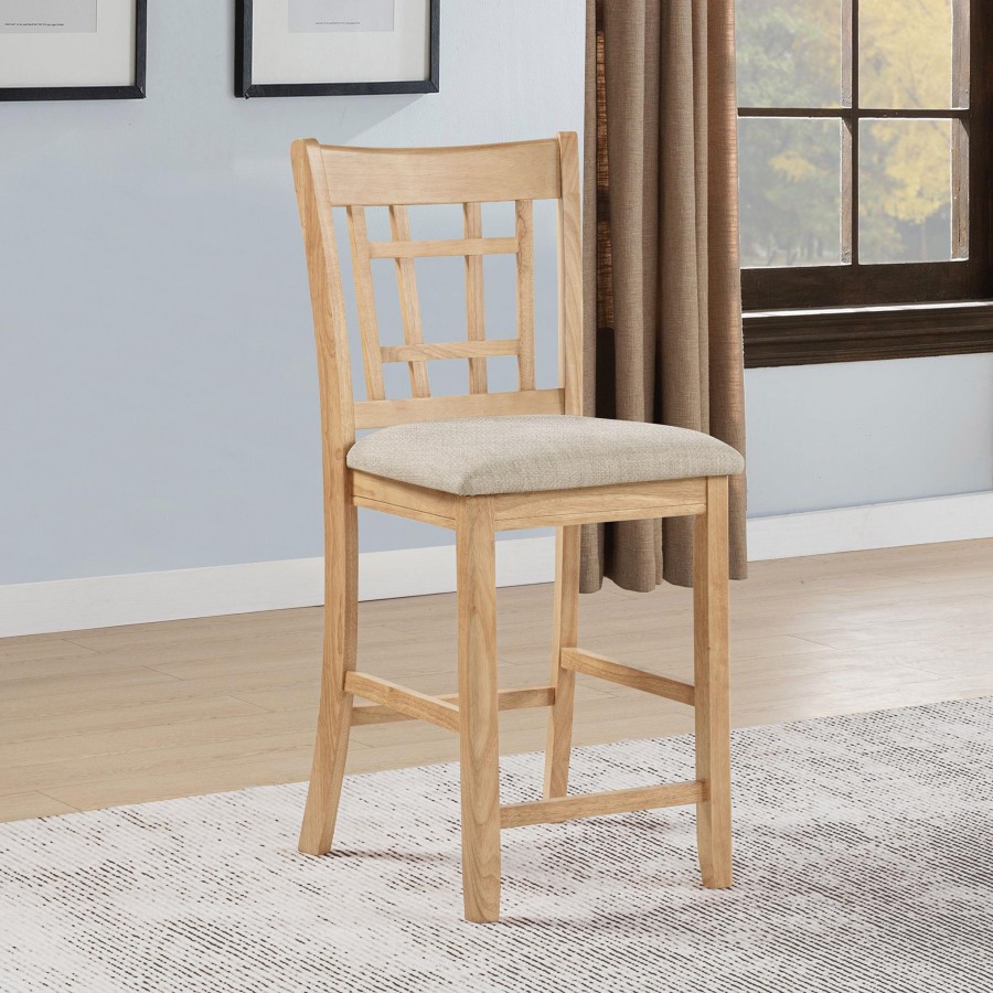 This counter height chair brings inviting warmth to elevated dining with clean lines and thoughtful craftsmanship. A gently contoured slat back introduces subtle character while offering comfortable support at counter height. The solid wood frame creates a sense of balance and stability, while the softly upholstered seat adds a welcoming layer of comfort. Wrapped in textured fabric over plush foam, the seat provides a cushioned feel suited for casual meals and extended conversations. Designed to pair seamlessly with counter height tables, this chair blends comfort, structure, and enduring appeal.
