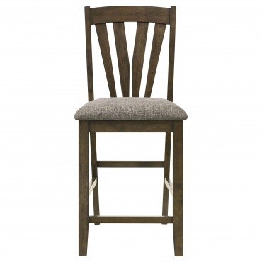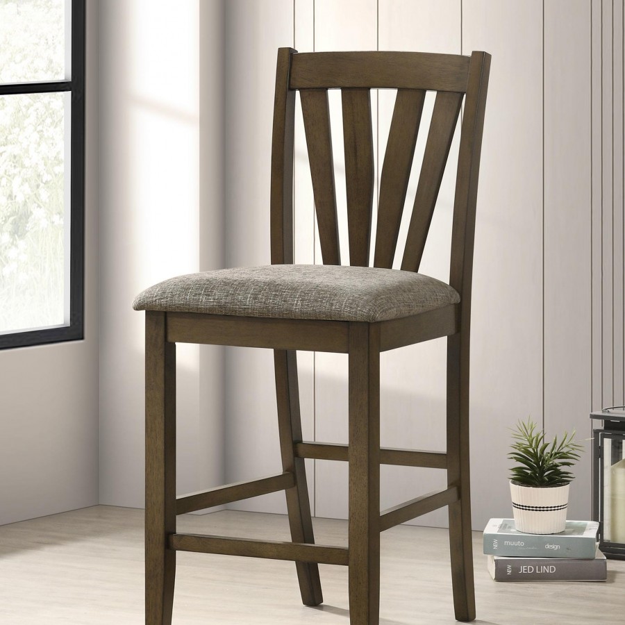 Complete your dining experience with this stylish and comfortable counter height dining chair. Crafted with a solid wood frame, this side chair offers sturdy support while the foam-padded seat cushions provide plush comfort. Upholstered in a grey fabric, the seat adds a warm and inviting feel to any dining space. Whether paired with your dining table or used as an accent chair, this chair combines functionality with a timeless look. Its classic design ensures it complements a variety of décor styles.