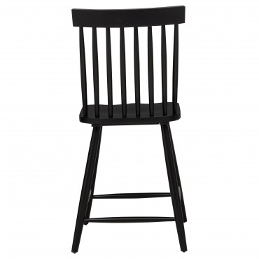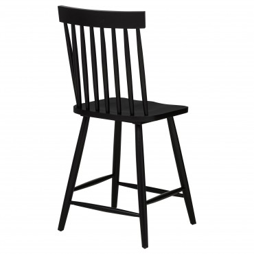 Classic and casual with a fresh farmhouse flair, this Windsor-style counter height chair features a high spindle back and gently contoured seat for timeless comfort. The clean silhouette is crafted from solid rubberwood with a rich wood veneer that enhances its natural grain. Angled legs with double stretchers offer reliable support and charm. Ideal for kitchen islands, pub tables, or counter-height dining spaces.