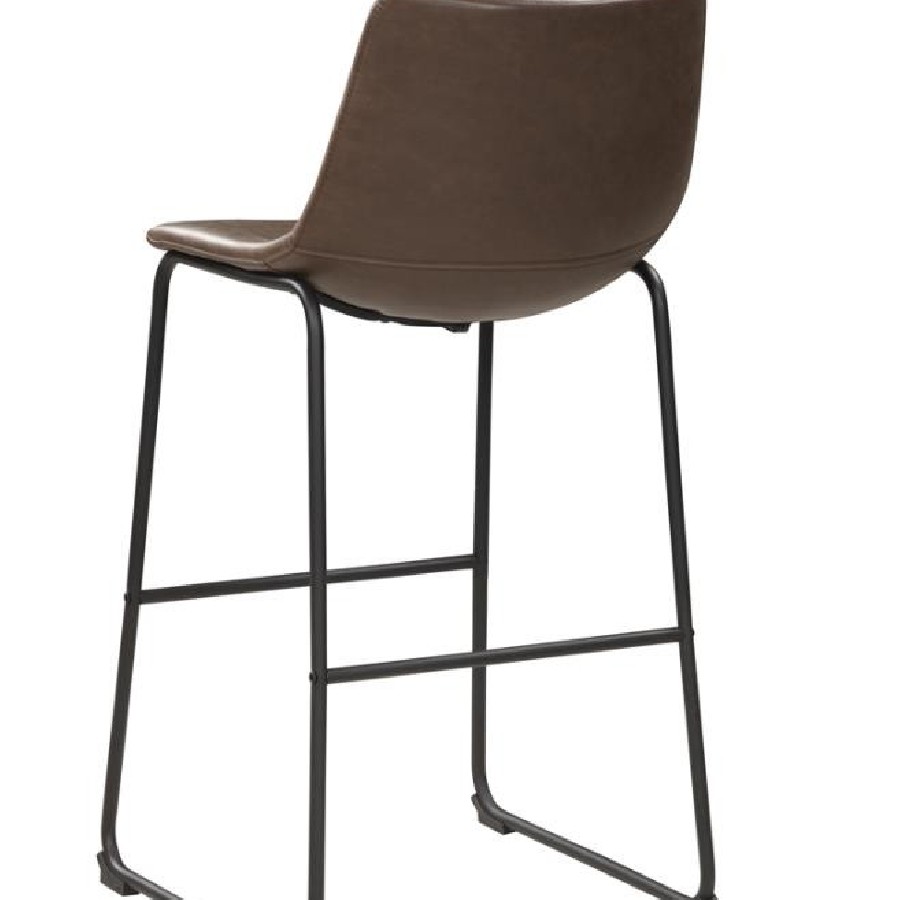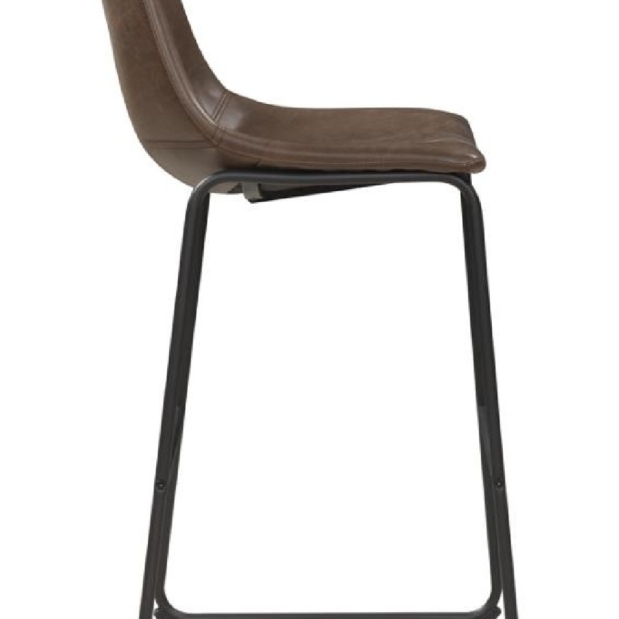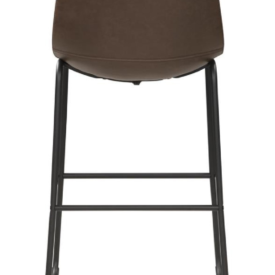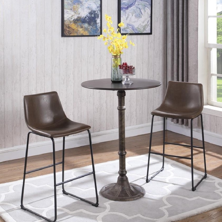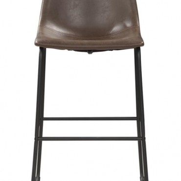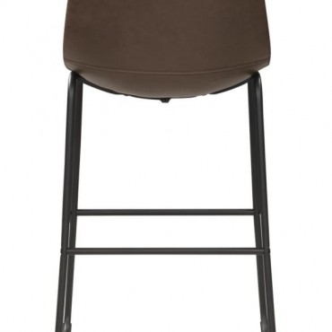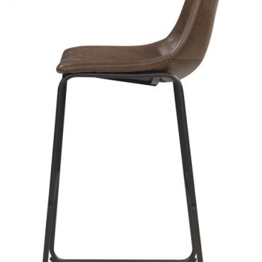This cozy, casual stool will have you dining in style. With a supportive back and foot pedestal, it offers a comfortable place to enjoy a meal or a cocktail. Its seat is upholstered in beautiful, two-tone brown leatherette. Its base is constructed from high-quality metal in a striking black finish. With a sleek silhouette and a classic design, this stool looks fabulous in any dining area.
