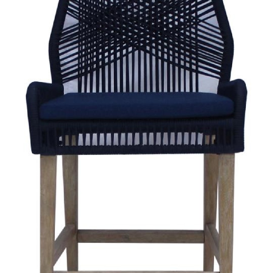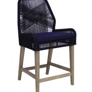 Nakia Woven Rope Counter Chair with Cushion Navy (Set of 2)