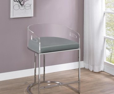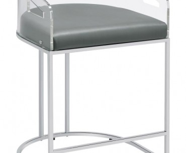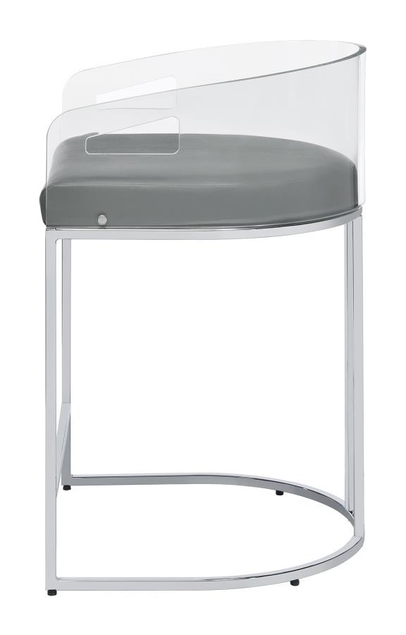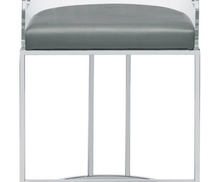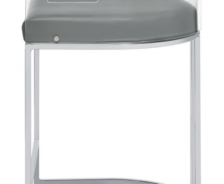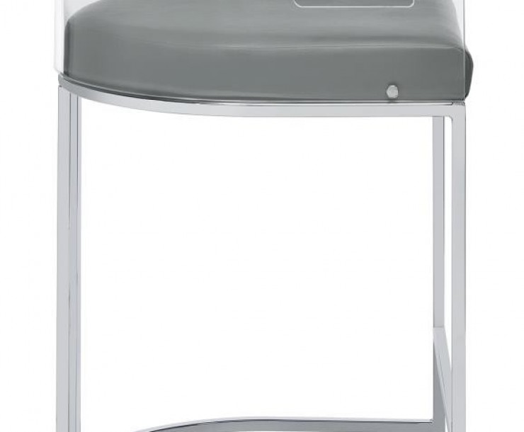 Ultra-modern with a retro-inspired vibe, this pair of stools make a striking piece to a dining room space. With a curved backrest in a clear acrylic material, each stool offers an open and airy design. Rest comfortably on a leatherette cushion as you dine or sip a cocktail. In addition, each stool is supported by a slim metal legs in a lustrous chrome finish and a base shape that mimics the rounded acrylic backrest. Pull up a pair of these stools to a kitchen bar or complete a compact home bar.
