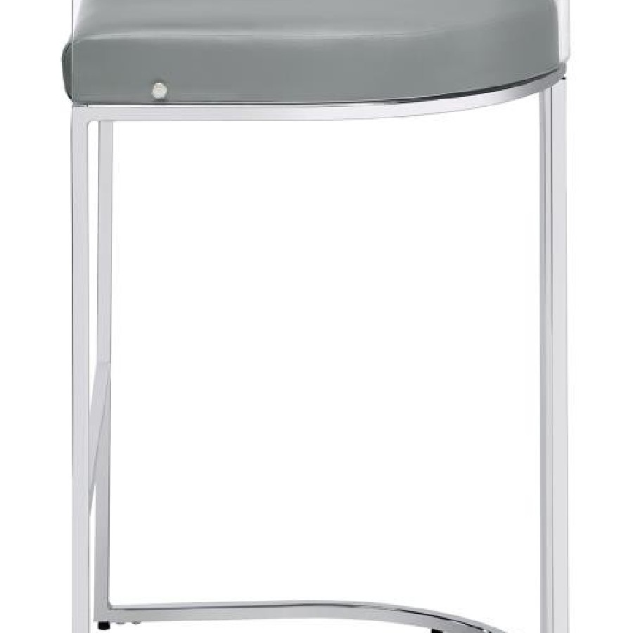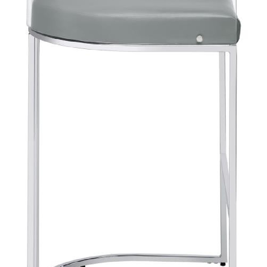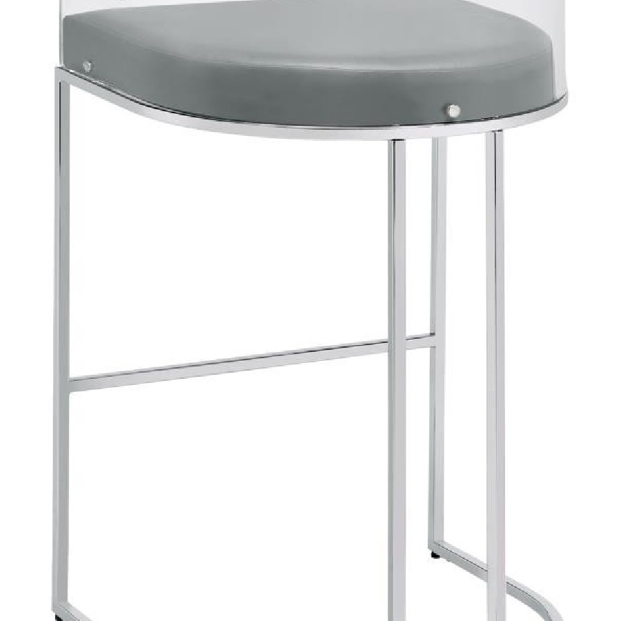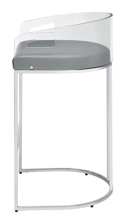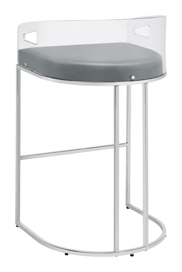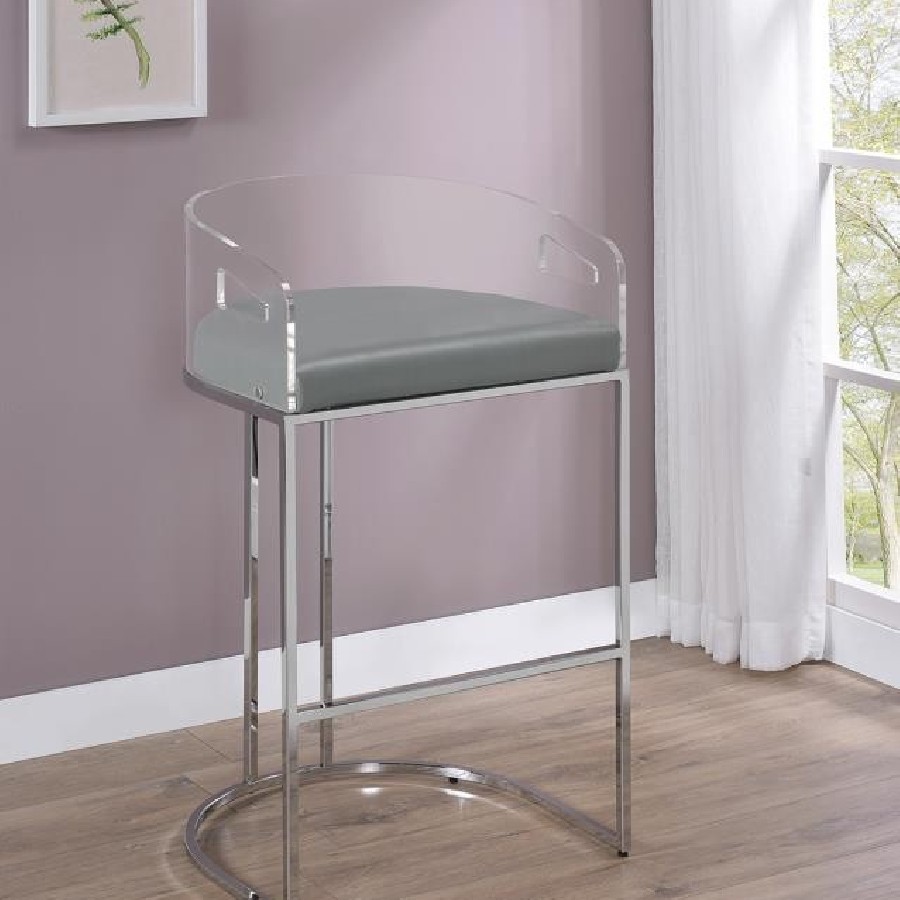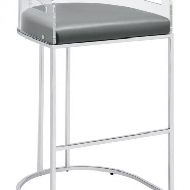 Ultra-modern with a retro-inspired vibe, this pair of stools make a striking piece to a dining room space. With a curved backrest in a clear acrylic material, each stool offers an open and airy design. Rest comfortably on a leatherette cushion as you dine or sip a cocktail. In addition, each stool is supported by a slim metal legs in a lustrous chrome finish and a base shape that mimics the rounded acrylic backrest. Pull up a pair of these stools to a kitchen bar or complete a compact home bar.