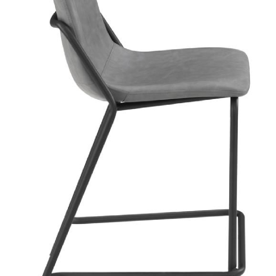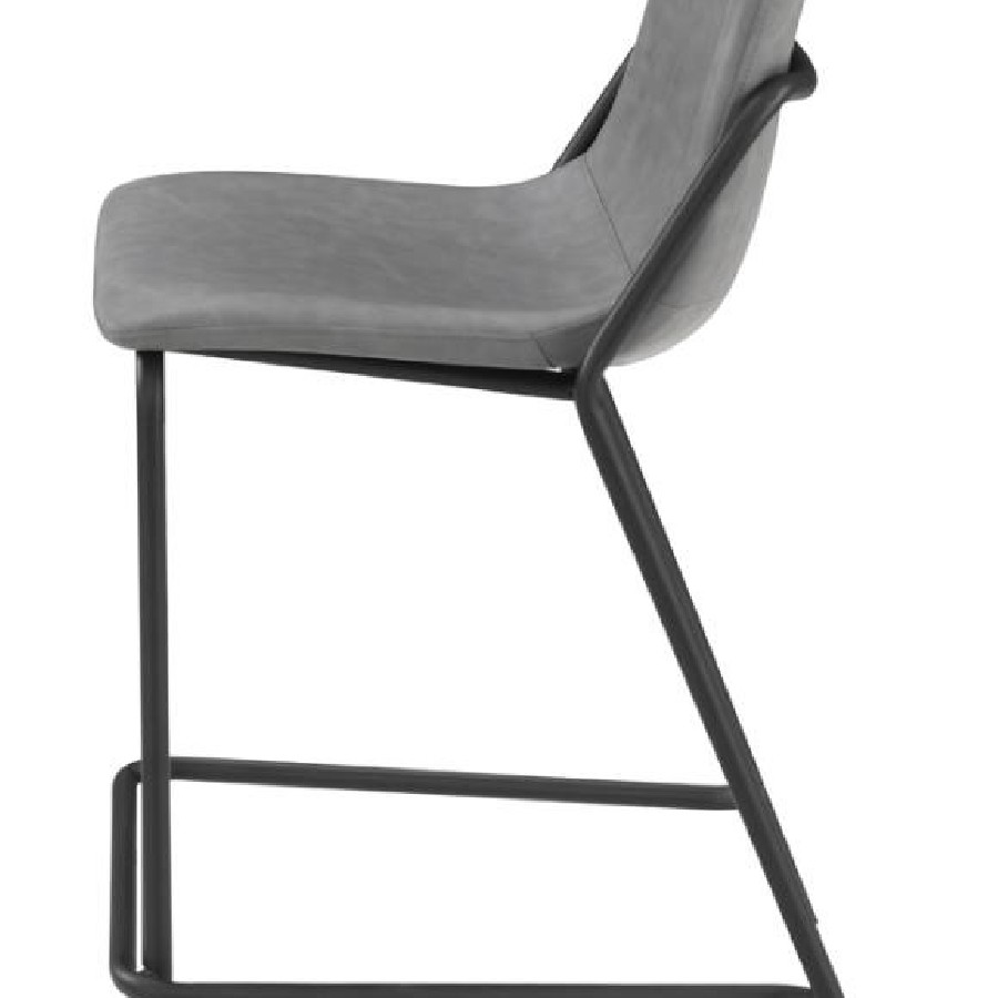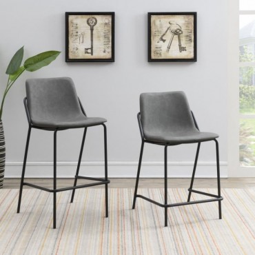 This pair of two stools offer a minimal look and a contemporary vibe. Supported by thin and tall frame in a black finish, it has an open and airy design that works with many styles. Each chair has a bucket style, Mid Century inspired seat, which is wrapped in a leatherette that is easy to clean and soft to the touch. In addition, each stool offers a supportive footrest run between the two front legs. Add a pair of these stools to a home bar for entertaining.