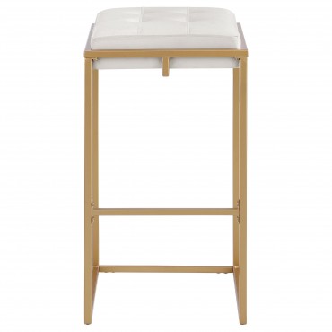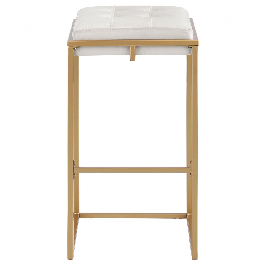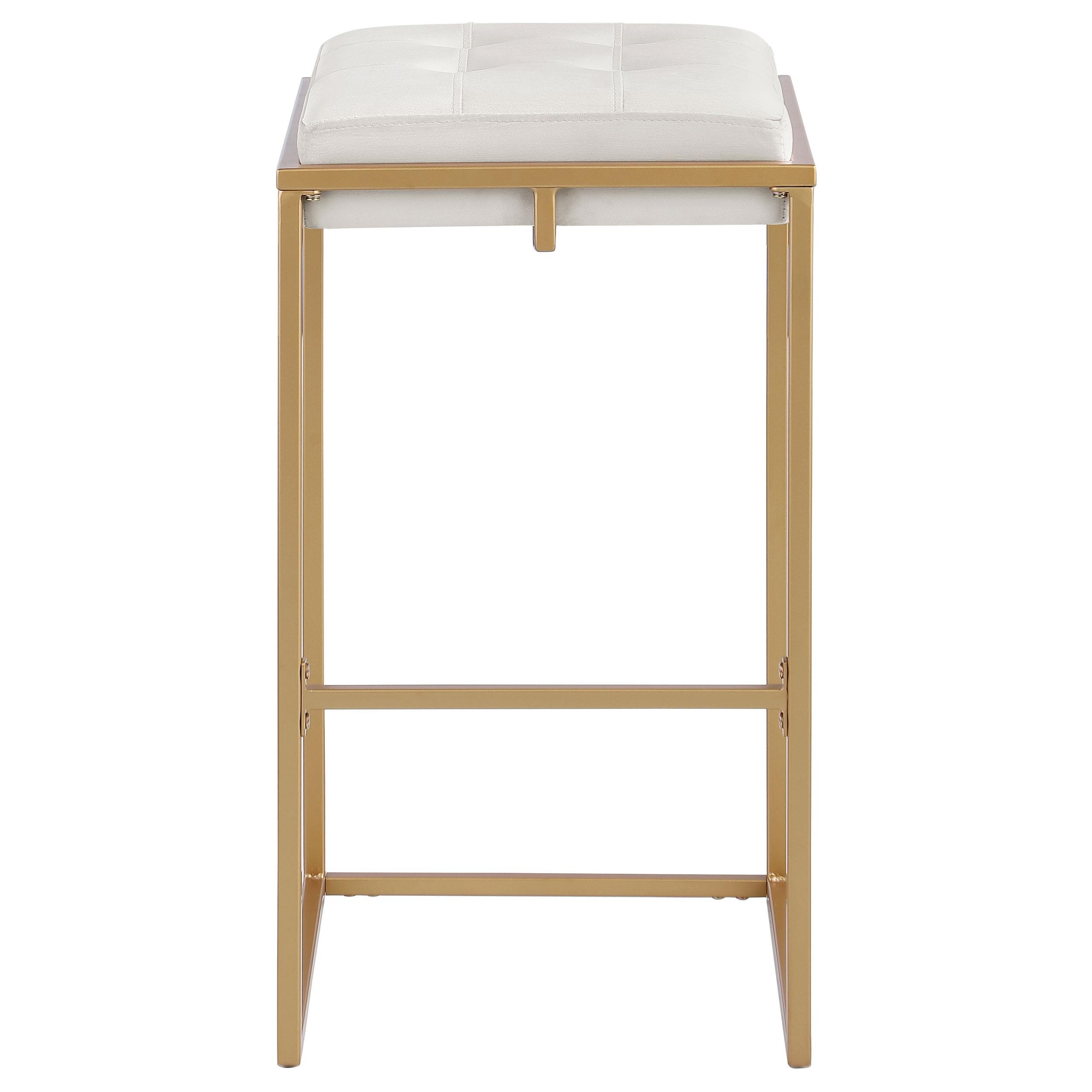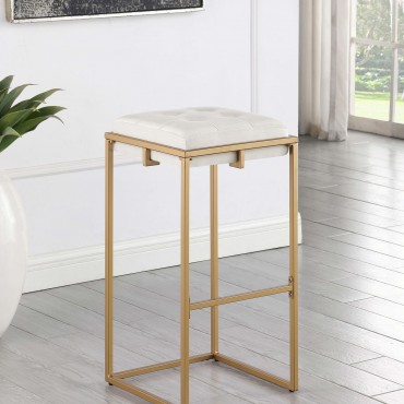 Sleek and sophisticated, these two modern glam stools offer a refreshingly chic style for bars and countertops. Slim, gold metal frames embrace the foam padded cushion, offering a comfy place to rest as you unwind and converse with guests and family. The square cushion tucked within offers charming details like button tufting and is upholstered in a plush velvet fabric for a supremely soft touch. Slide these stools up to your dining space with the slender sled base. A footrest in front offers extra support.