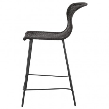 Designed with a mid-century-inspired aesthetic, this contemporary stool offers a charming brown faux rattan seat, nestled in place by an open, airy frame. The seat offers a subtle contoured shape that cradles the torso and offers a comfortable place of rest. Supporting the seat are slender tubular legs in a sandy black finish, pushing the dark tones and hues to create a dramatic, moody feel. Natural elements collide to offer a boho-inspired touch to bars, breakfast nooks and more. Pull this stool up to an elevated dining space for a casual seating arrangement.