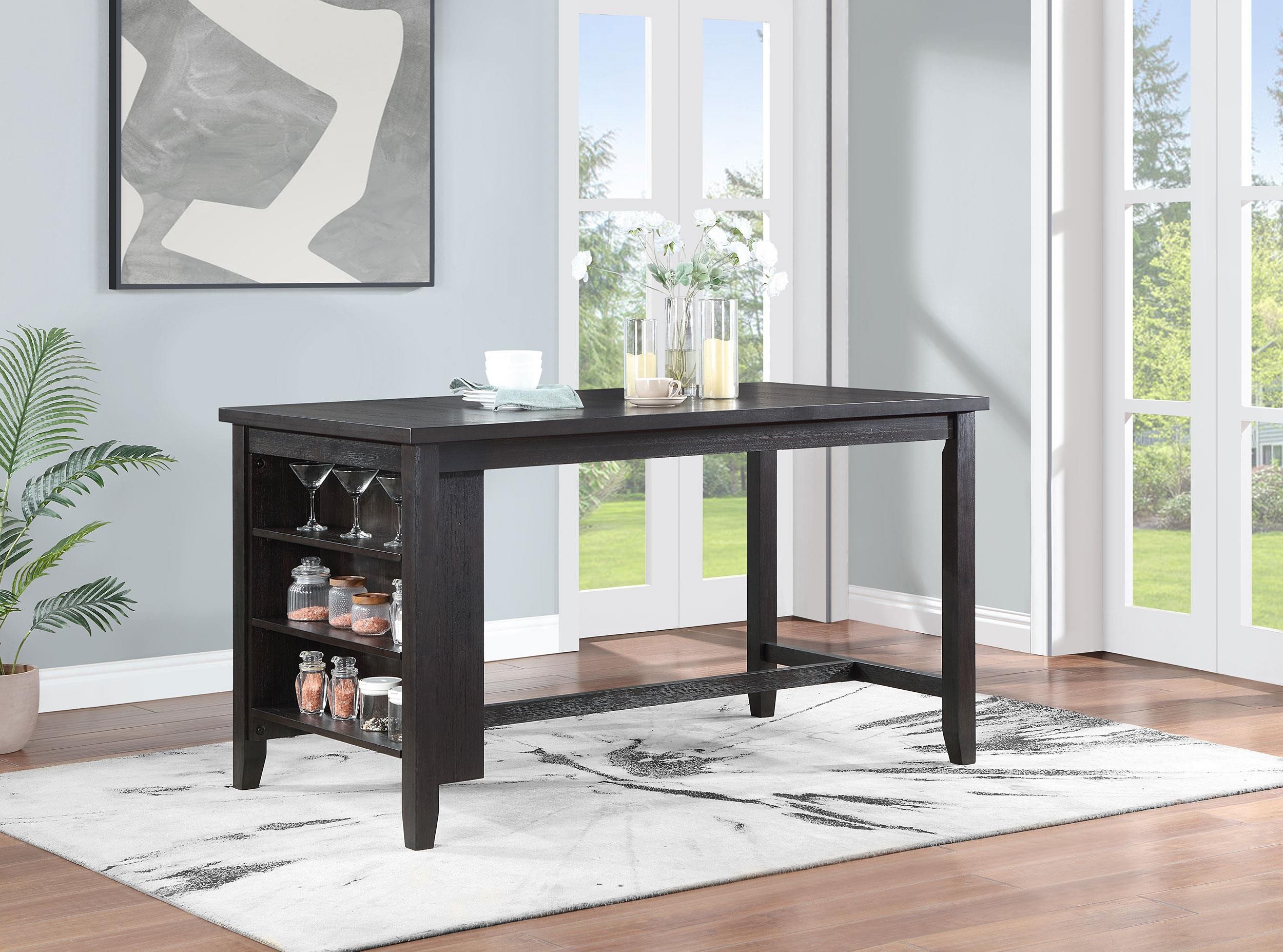 Design your casual dining space around a modern counter height dining table that's compact and multifunctional. It features a clean, classic silhouette, complete with a storage on one side. Its three fixed shelves are ideal for everything from glassware to books and decor, offering a personalized touch to your table. The table showcases a dark gray finish, providing a crisp, neutral palette and offering a stylish complement in industrial or urban settings. Choose the perfect blend of accessories for the bookcase to create a stylish presentation.