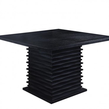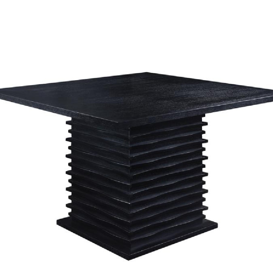 Bring bold, modern style to your dining space with this counter-height dining table. Its striking square silhouette is enhanced by a sculptural wave-textured pedestal base, offering a dynamic, architectural aesthetic. Crafted from rubberwood, engineered wood, and oak veneer, it features a rich black finish that exudes sophistication. The spacious tabletop comfortably accommodates guests, making it ideal for casual gatherings or elegant meals in a contemporary setting.