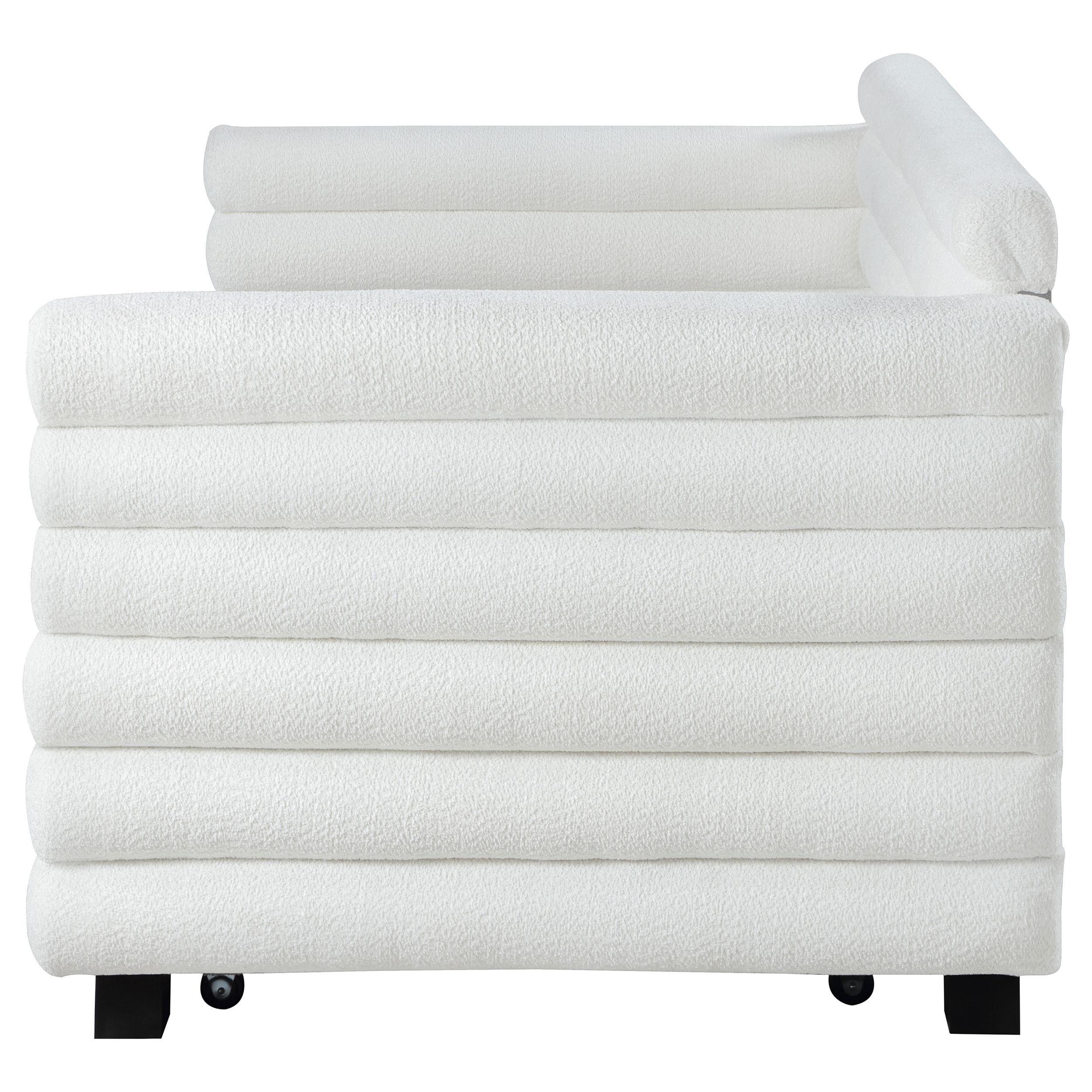 Patricia Boucle Upholstered Twin Day Bed with Trundle White