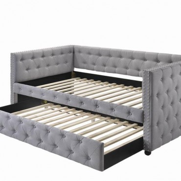 This bed's regal appearance belies its convenience and usefulness in hosting those extra house guests. The tufted surface pattern adds visual interest. The metallic-colored polyester finish makes this a design element you can place anywhere throughout the home. Use daily as a single bed or daybed for lounging, reading or watching tv. When company comes, no worries: an extra sleeping compartment instantly and effortlessly appears.