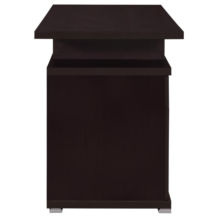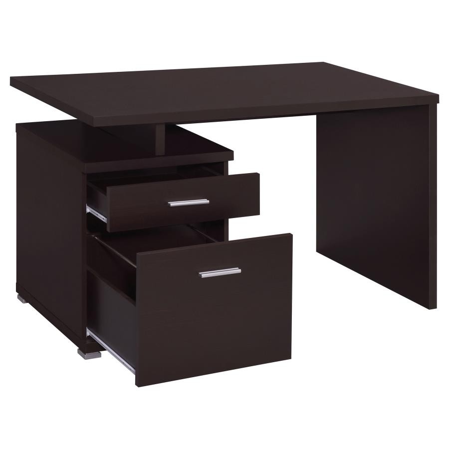 Maximize efficiency in any workspace with this sleek office desk. Designed with a reversible configuration, the attached storage can be placed on either side to suit your layout. A spacious desktop provides room for projects, while a storage drawer and a file cabinet keep essentials neatly organized. The file drawer accommodates both letter and legal-sized documents for versatile use. Built with engineered wood and laminate veneer, this desk blends durability with modern style for home or office settings.