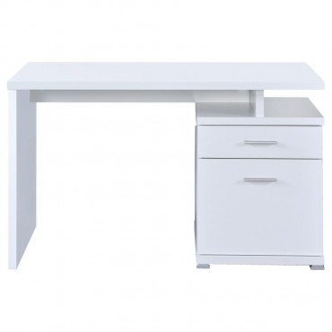 Maximize efficiency in any workspace with this sleek office desk. Designed with a reversible configuration, the attached storage can be placed on either side to suit your layout. A spacious desktop provides room for projects, while a storage drawer and a file cabinet keep essentials neatly organized. The file drawer accommodates both letter and legal-sized documents for versatile use. Built with engineered wood and laminate veneer, this desk blends durability with modern style for home or office settings.